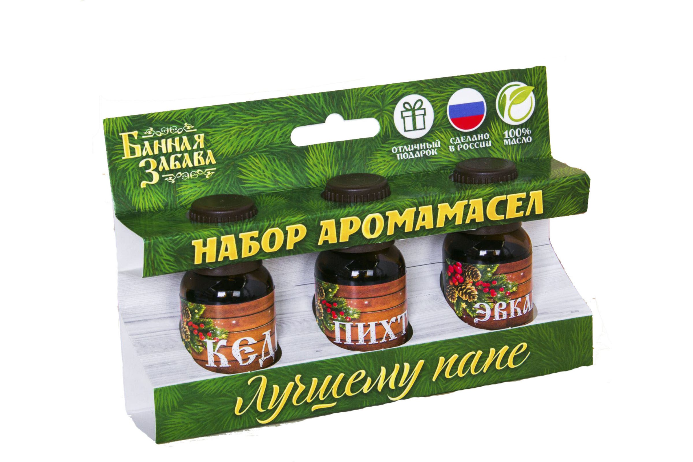 Набор аромамасел Банная забава Лучшему папе. С Новым годом пихта, эвкалипт и кедр, 3 шт. 2482734