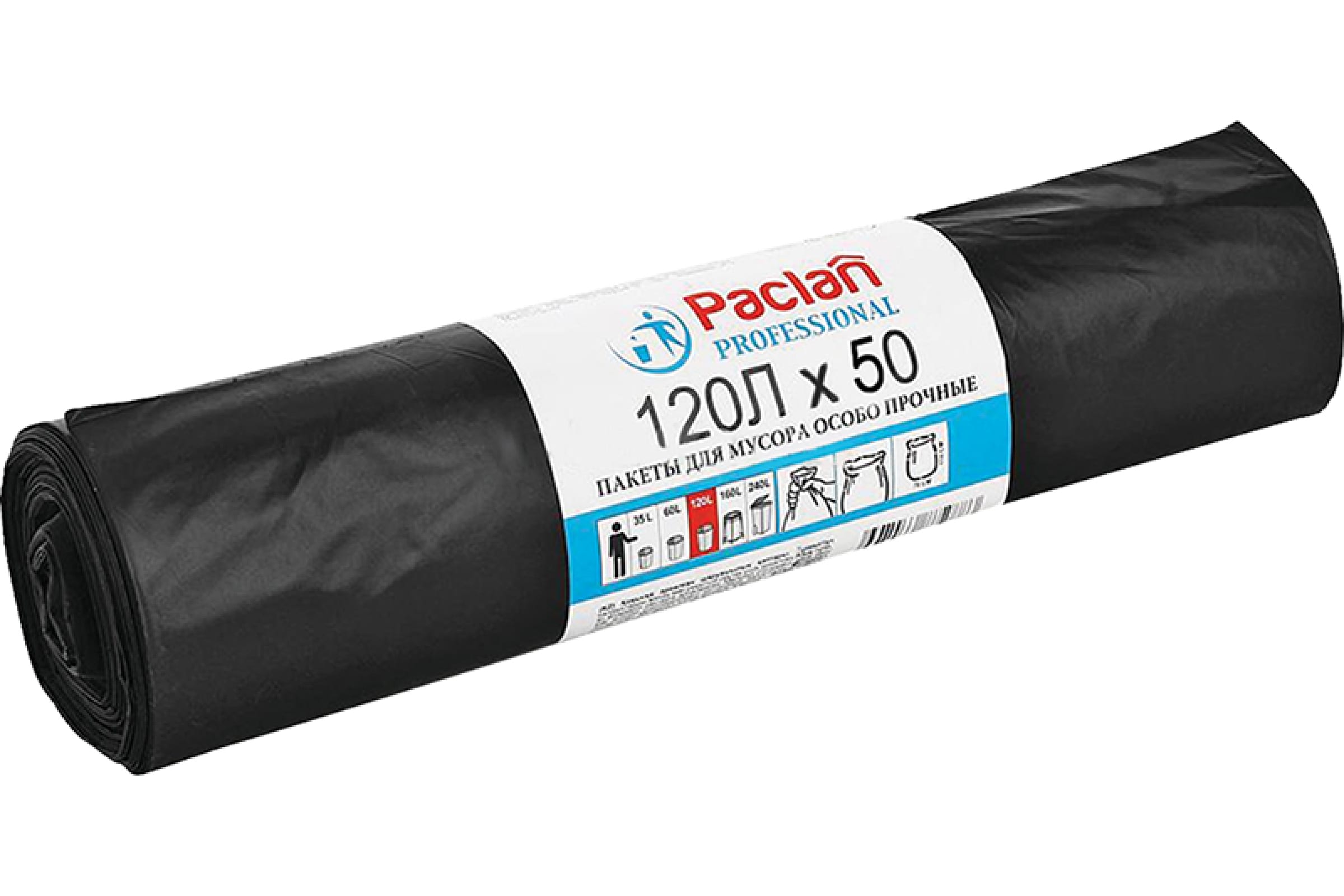 Мешки для мусора Paclan Professional 120 л 70x110 см черные ПВД 20 мкм 50 шт.