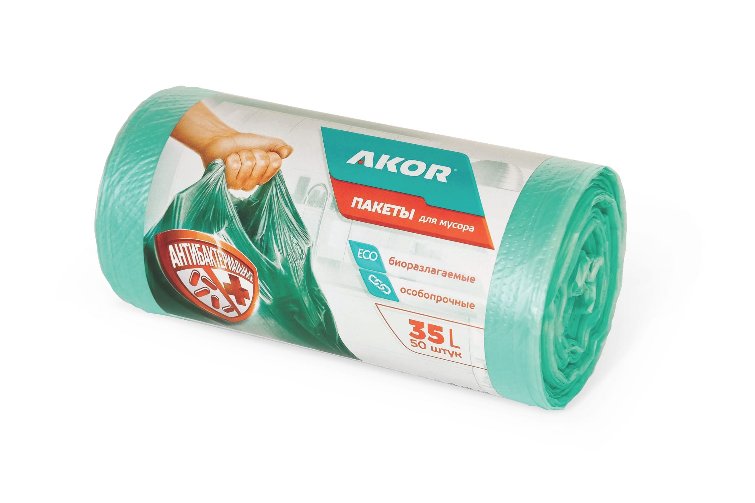 Пакеты для мусора АКОР "АНТИБАК+БИО" 35 л, 50 шт 205-104