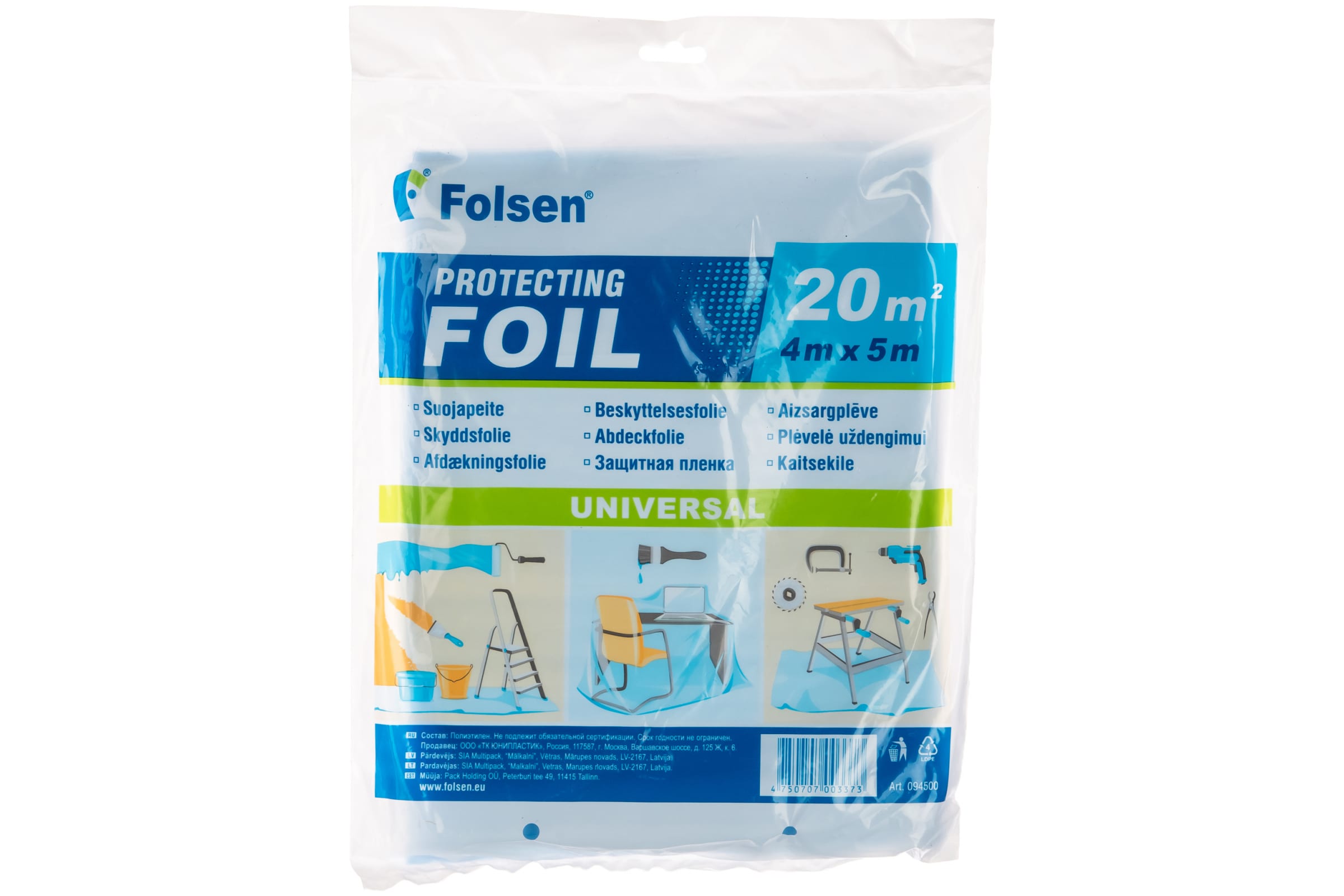 Ремонтная пленка Folsen 4x5м=20м2 голубая прозрачная 094500