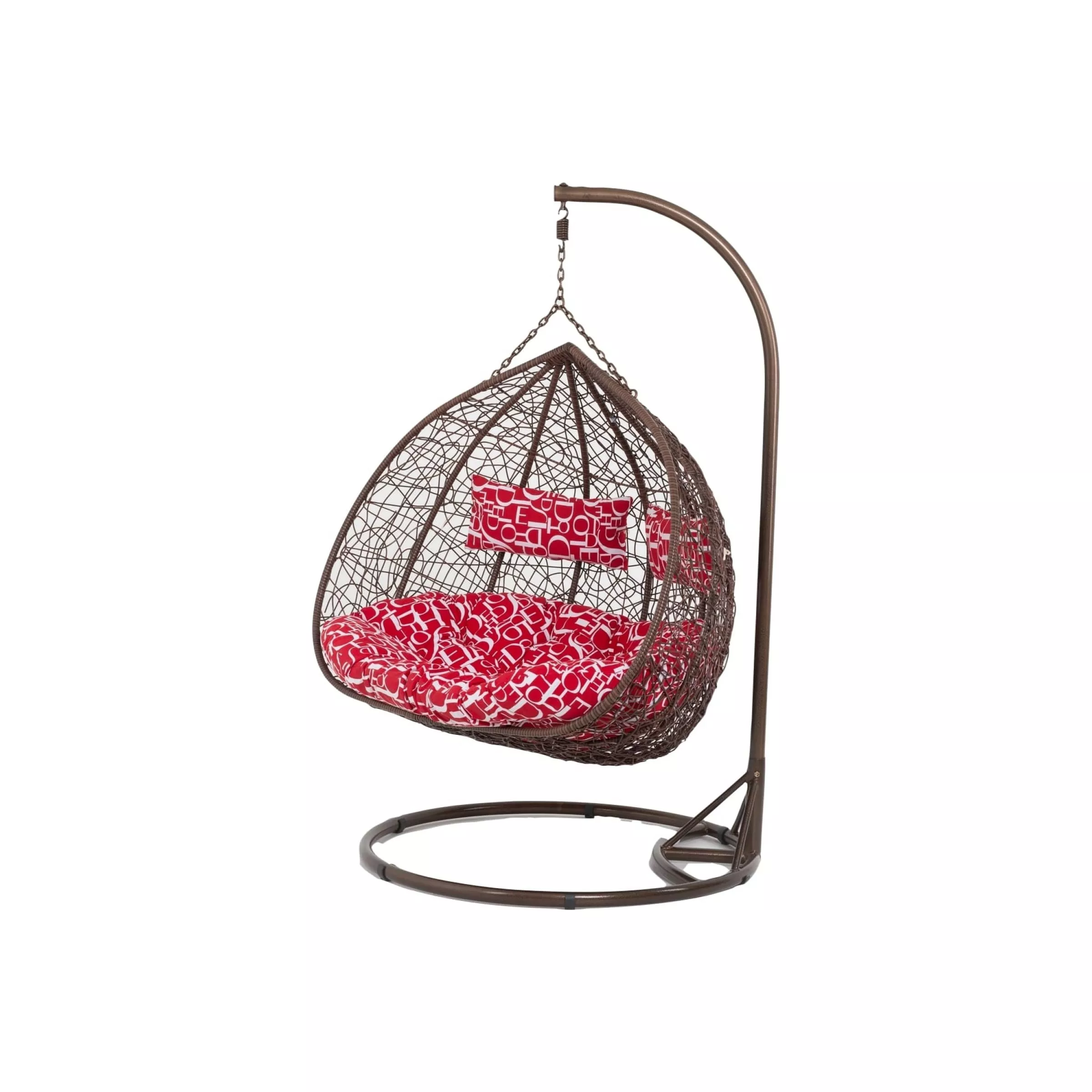 Подвесное кресло Vinotti коричневый каркас, красная с белым подушка 45-004-04