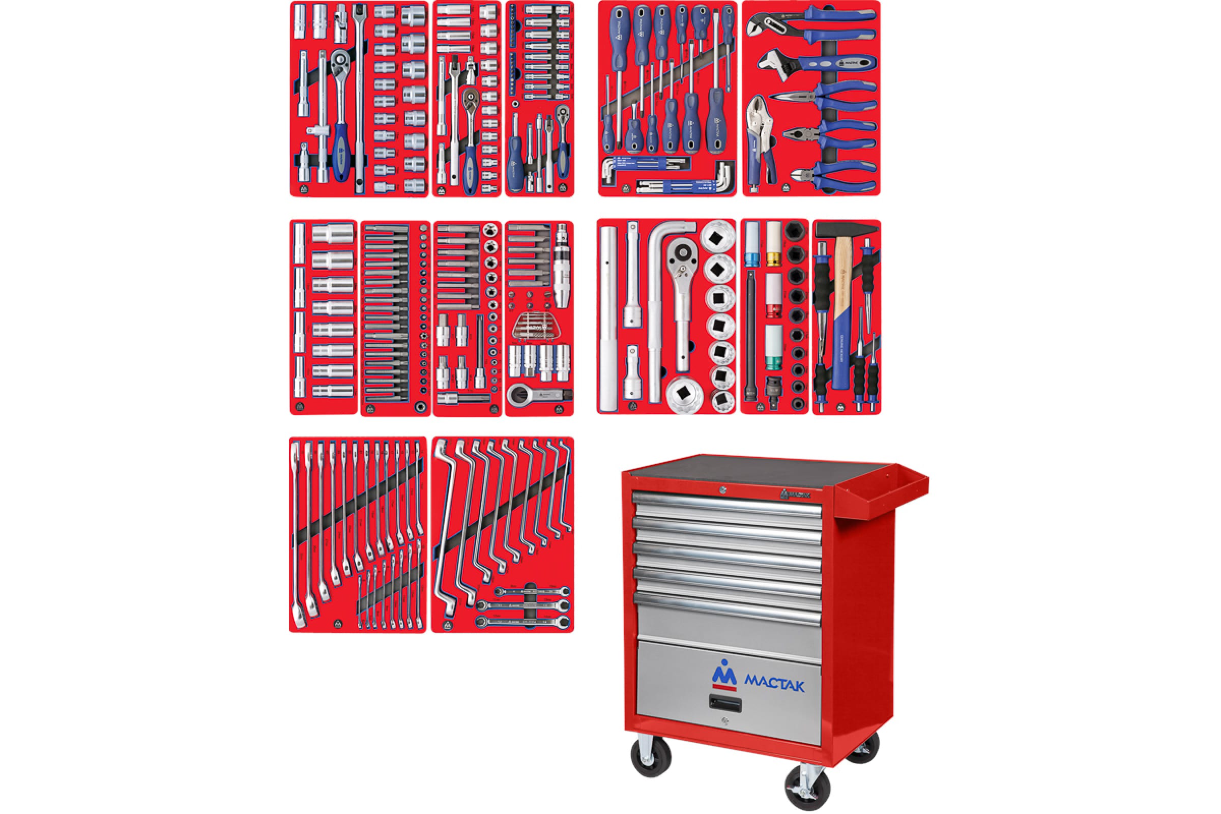 Набор инструментов ПРОФИ в красной тележке, 299 предметов МАСТАК 52-299R