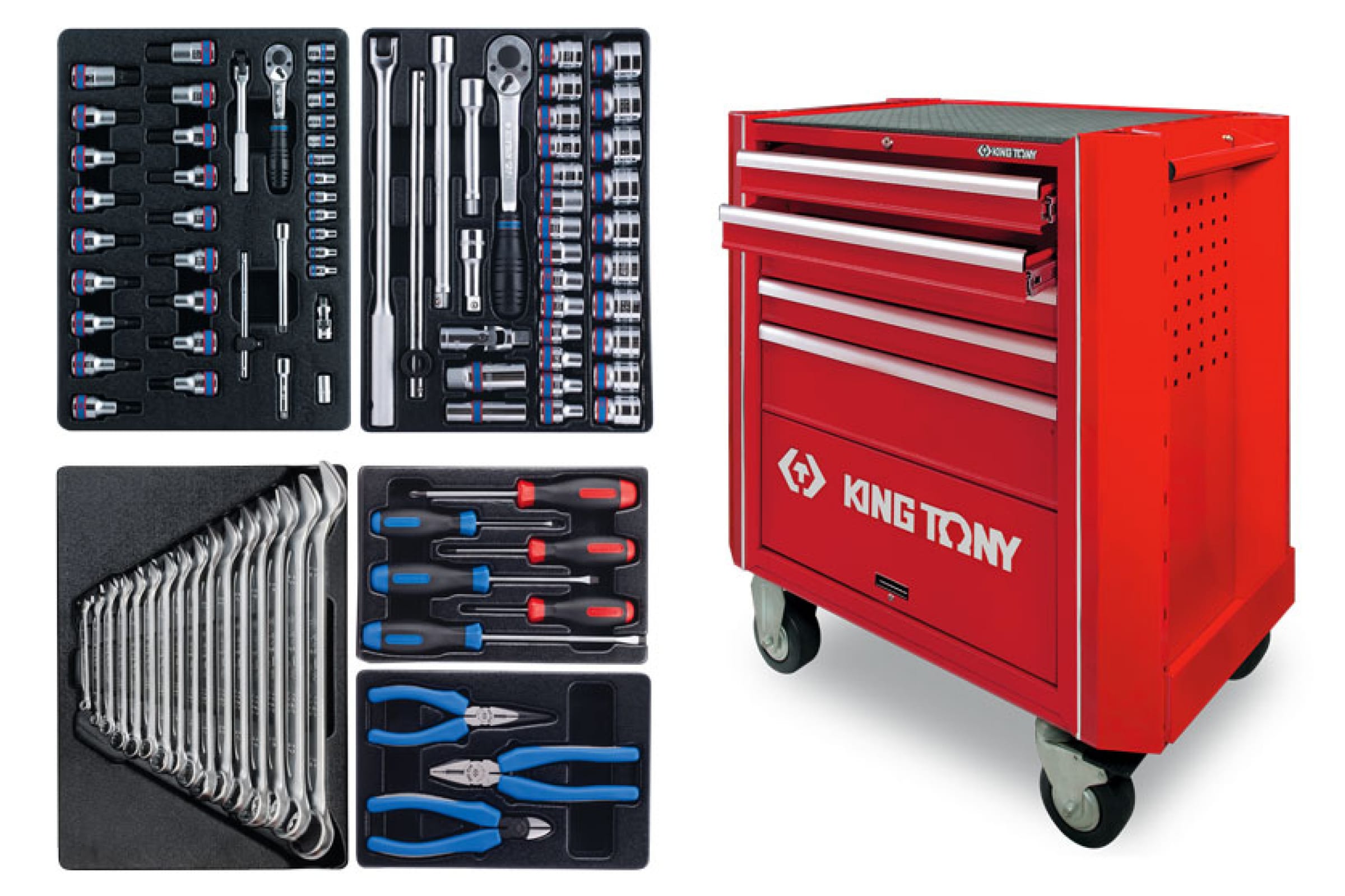 Набор инструментов в красной тележке, 95 предметов KING TONY 931A-010MR-MA