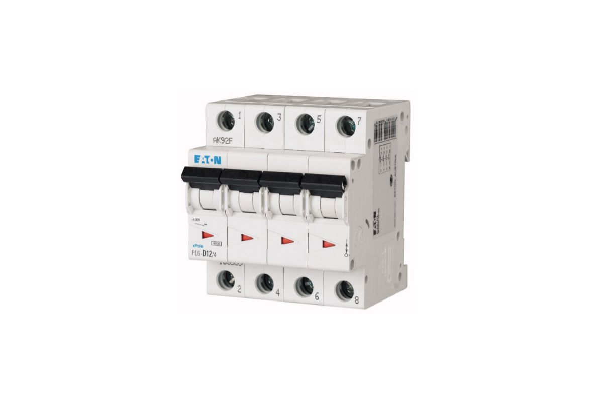 PL6-B12/4 автоматический выключатель 12а, кривая отключения b, 4 полюс, откл. способность 6 ка