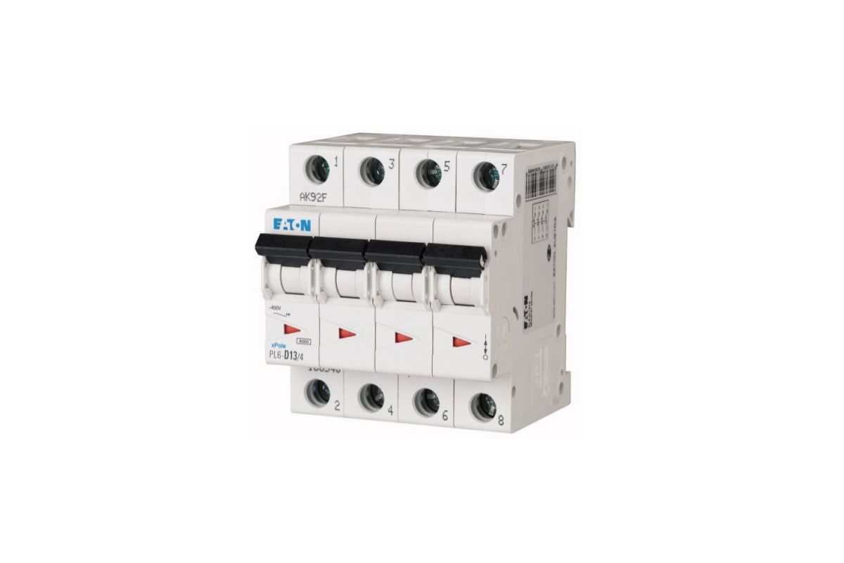 PL6-B13/4 автоматический выключатель 13а, кривая отключения b, 4 полюс, откл. способность 6 ка