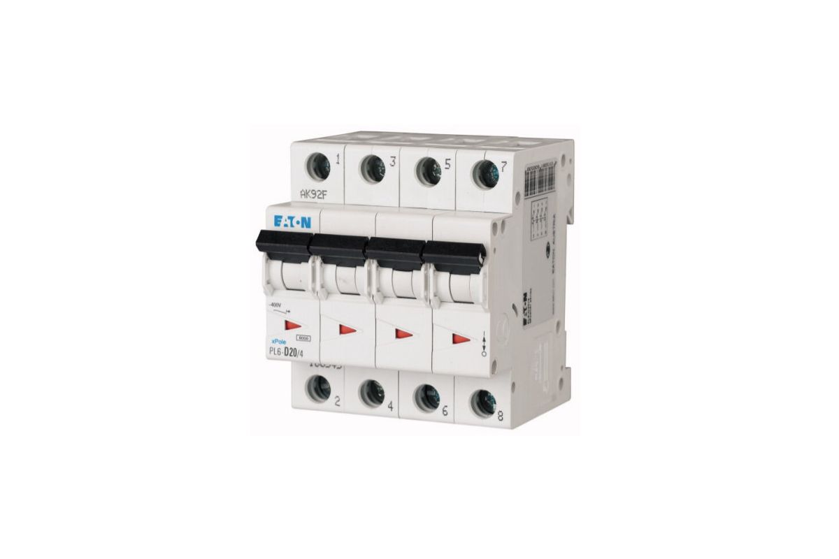 PL6-D20/4 автоматический выключатель 20а, кривая отключения d, 4 полюс, откл. способность 6 ка