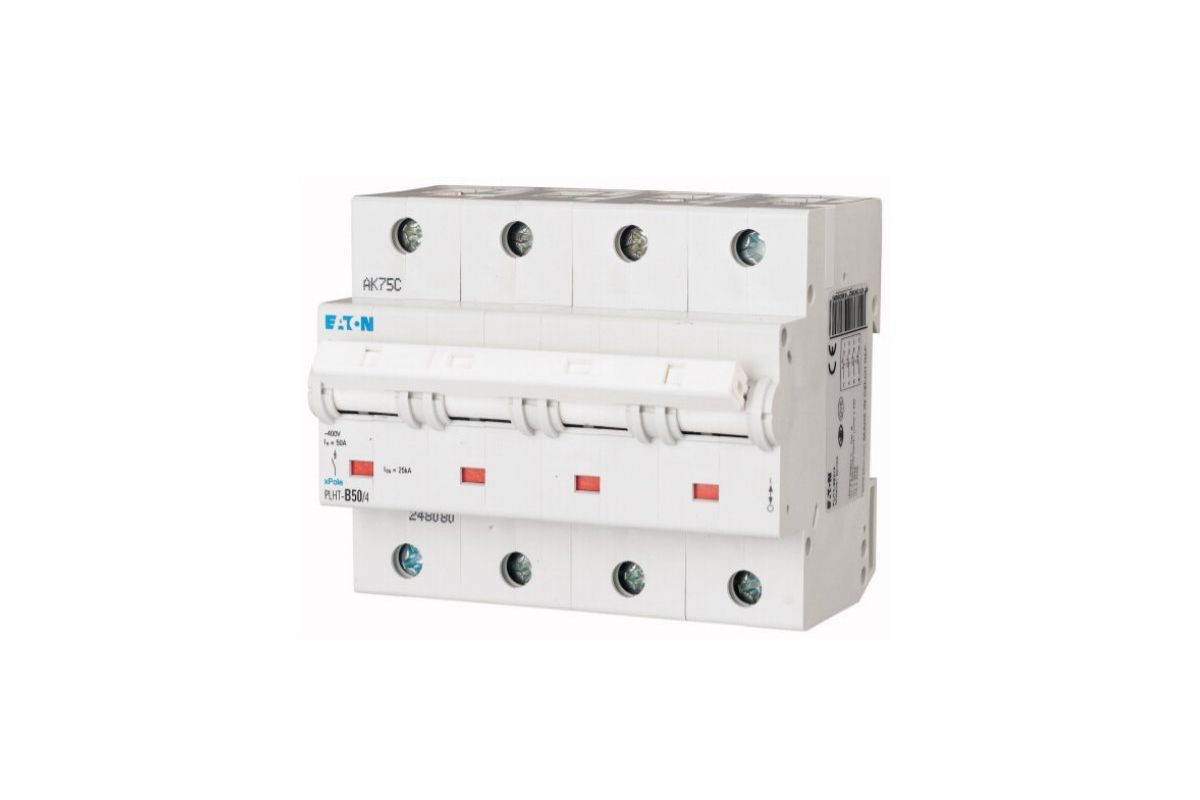 PLHT-B50/4 автоматический выключатель 50а, кривая отключения в, 4 полюса, откл. способность 25 ка