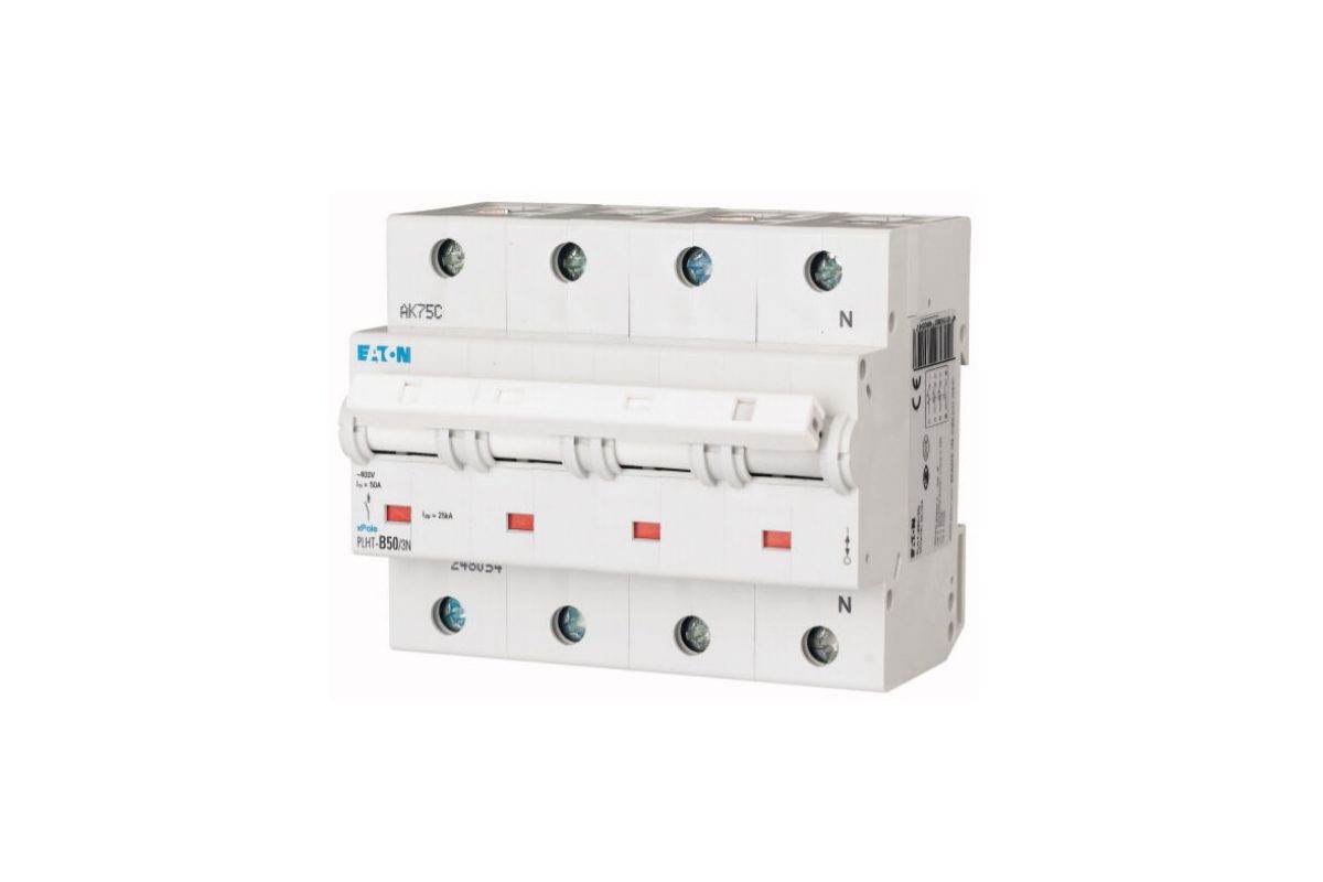 PLHT-C50/3N автоматический выключатель 50а, кривая отключения с, 3+n полюса, откл. способность 25 ка
