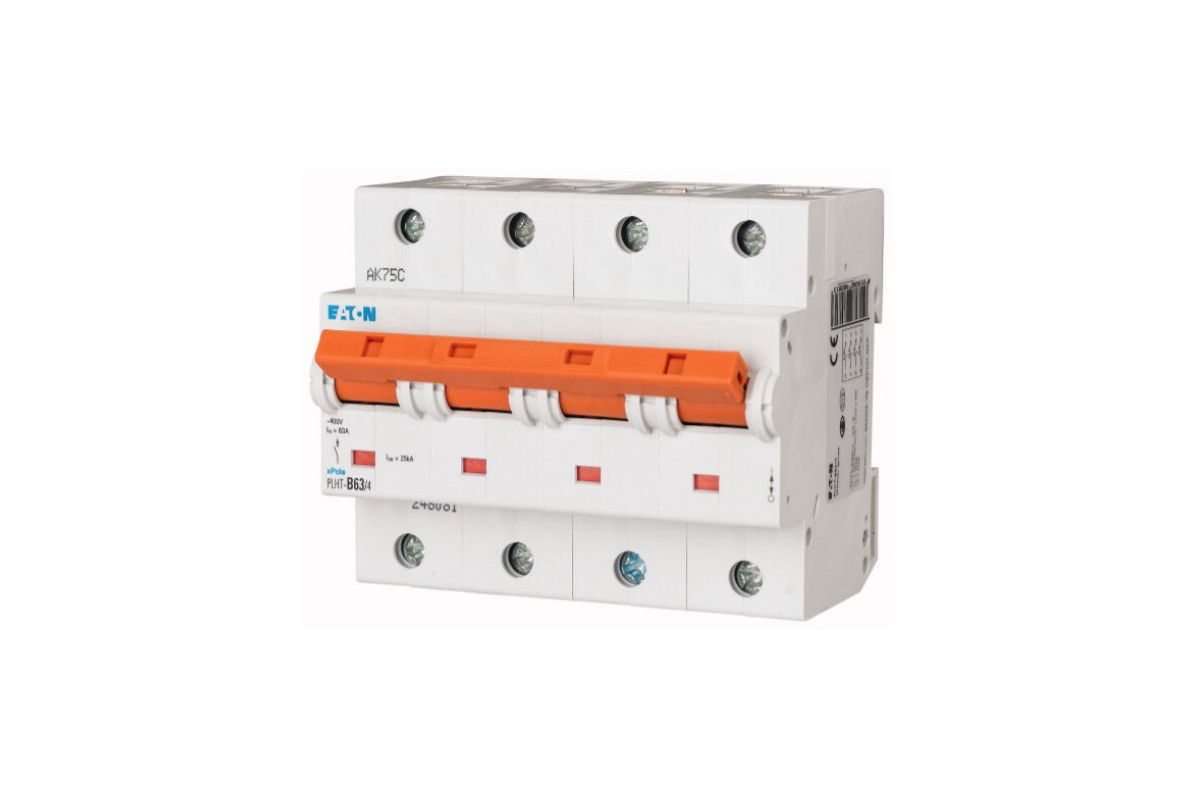 PLHT-C63/4 автоматический выключатель 63а, кривая отключения с, 4 полюса, откл. способность 25 ка