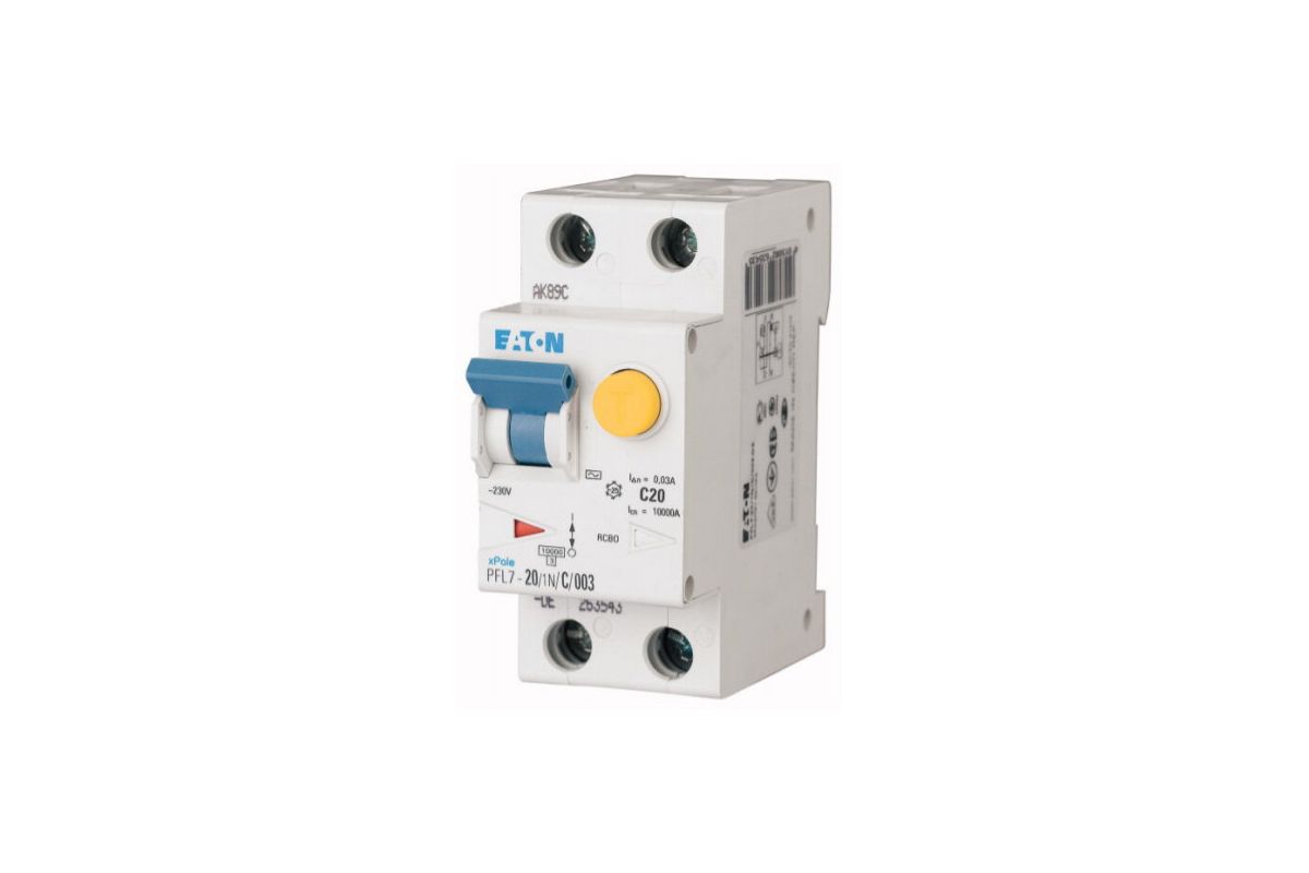 PFL7-20/1N/B/03-A дифференциальный автоматический выключатель 20/0,03а (ac,dc), кривая отключения в, 1+n полюсов, откл. способность 10 ка