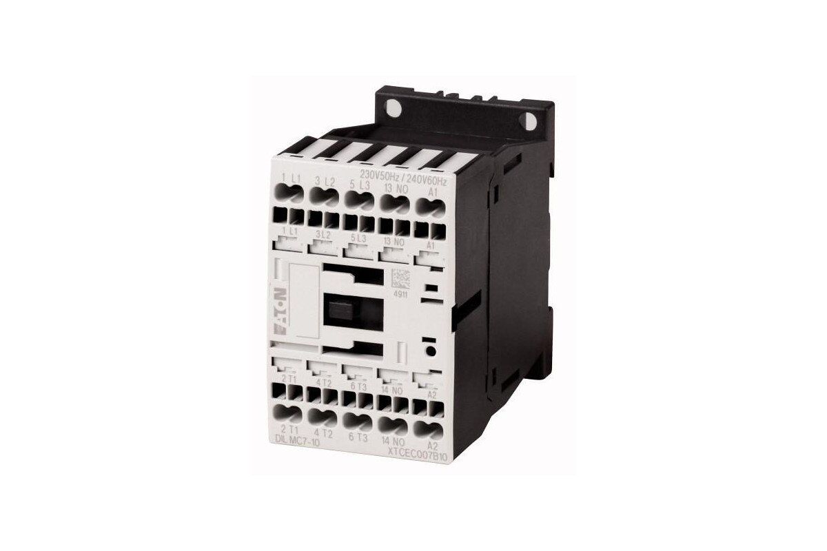 Контактор Eaton (Moeller) DILMC7-10(*V50HZ) 7 А, управляющее напряжение произвольное 50Гц (AС), 1НО доп. контакт, категория применения AC-3, AC-4