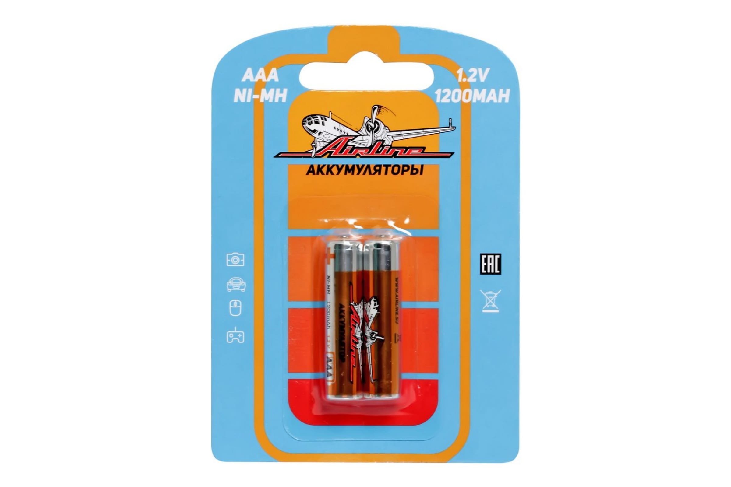 Аккумуляторные батарейки Airline AAA, HR03, Ni-Mh, 1200 mAh, 2шт. AAA-12-02