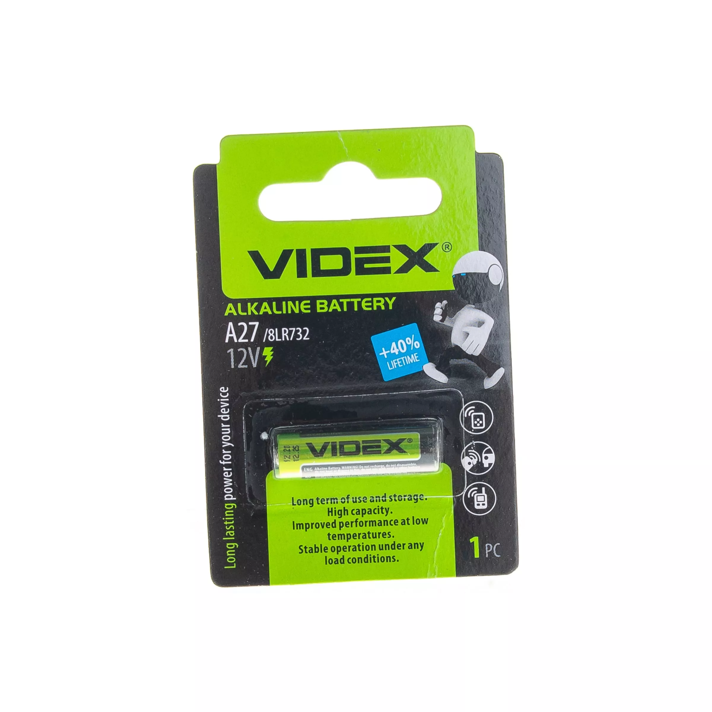Элемент питания VIDEX, A27/GP27A/MN27/L828/27A/V27A/A27BP/G27A/8LR732, 1 шт в блистере VID-A27-1BL