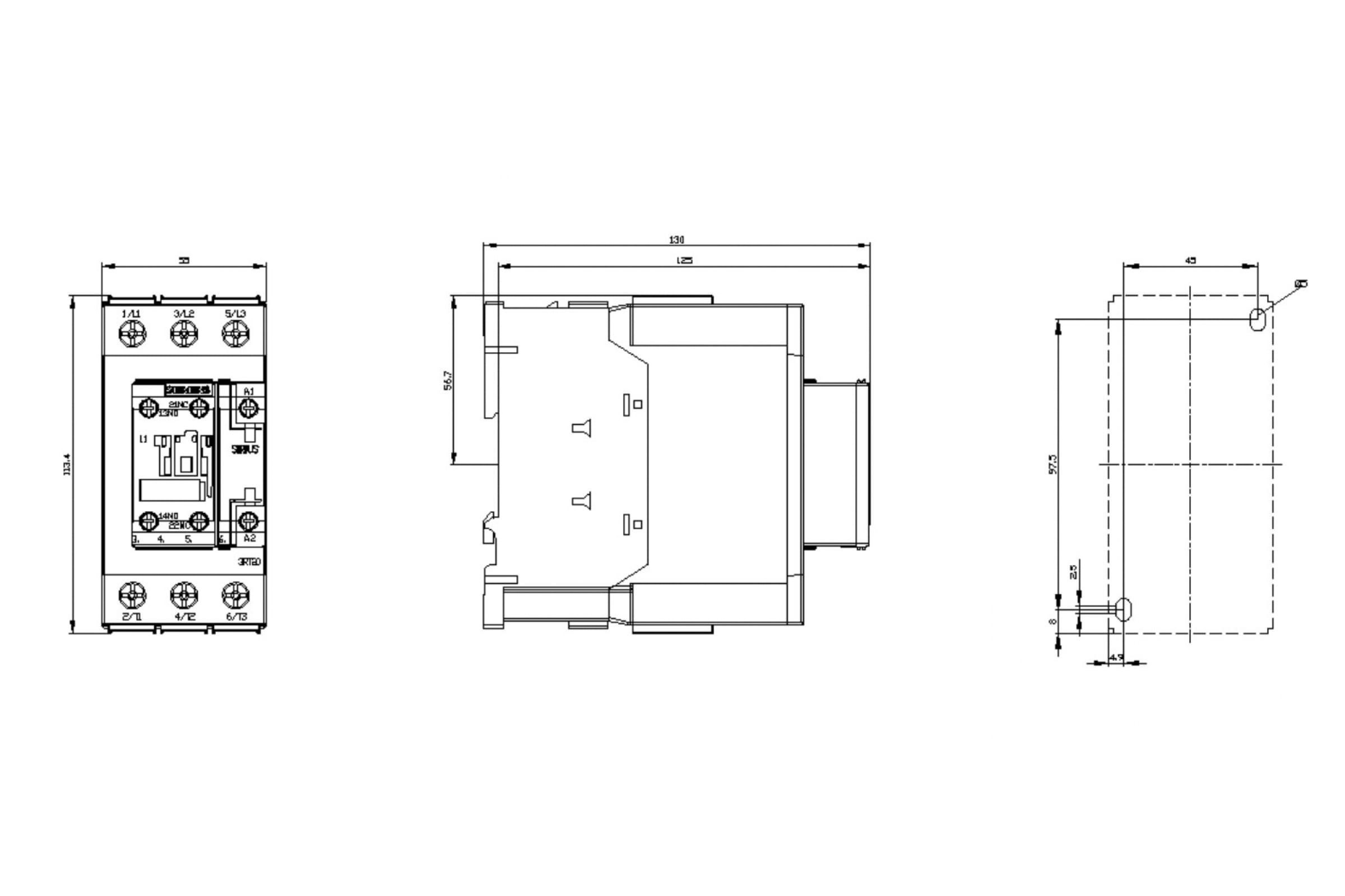 Контактор Siemens 3 полюса 22КВТ/АС3/400В, Блок-Контакты 1НО+1НЗ 3RT20361AF00