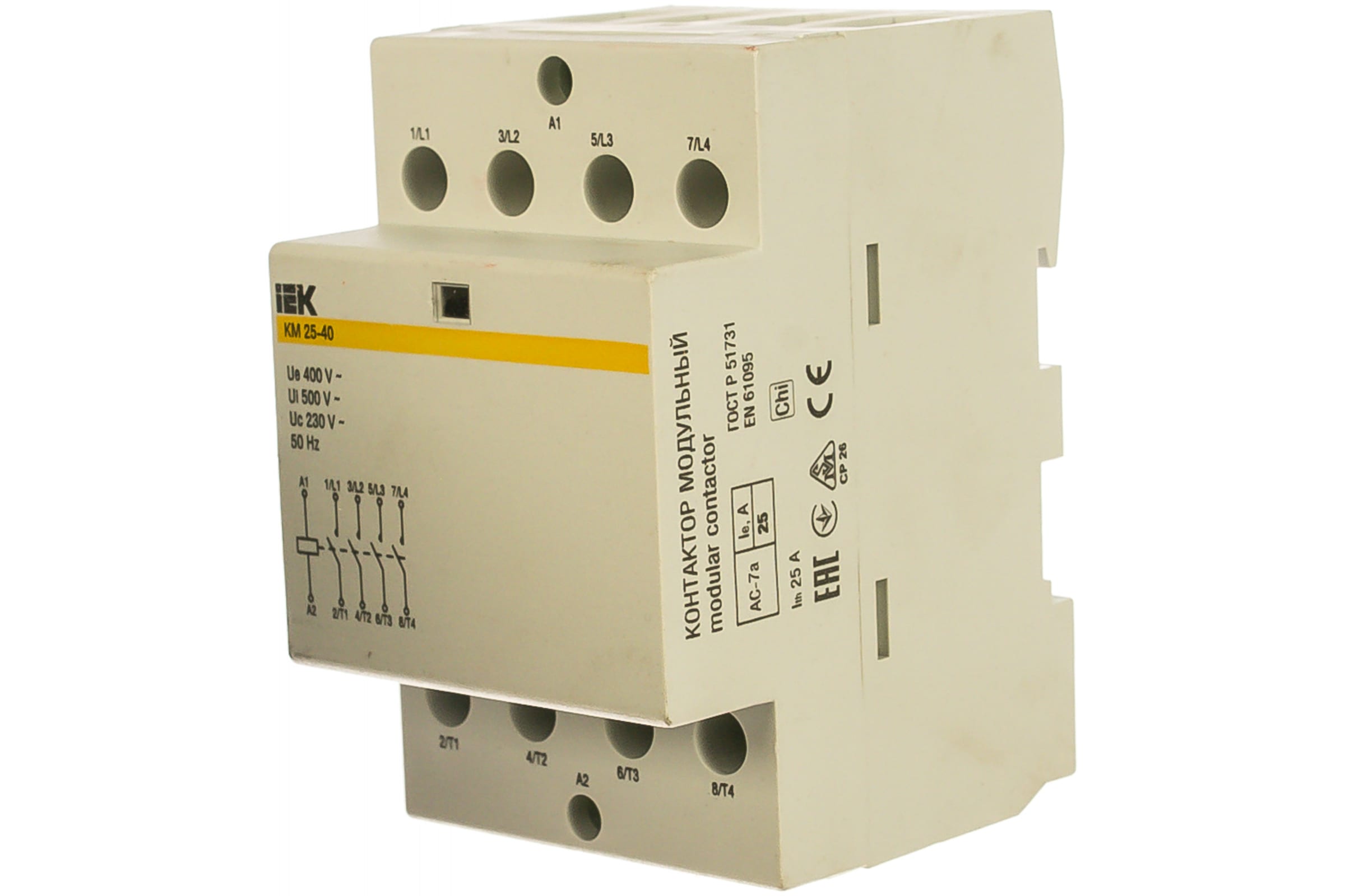 Модульный контактор IEK КМ25-40 25А/4п 4НО 230В AC/DC ИЭК MKK20-25-40