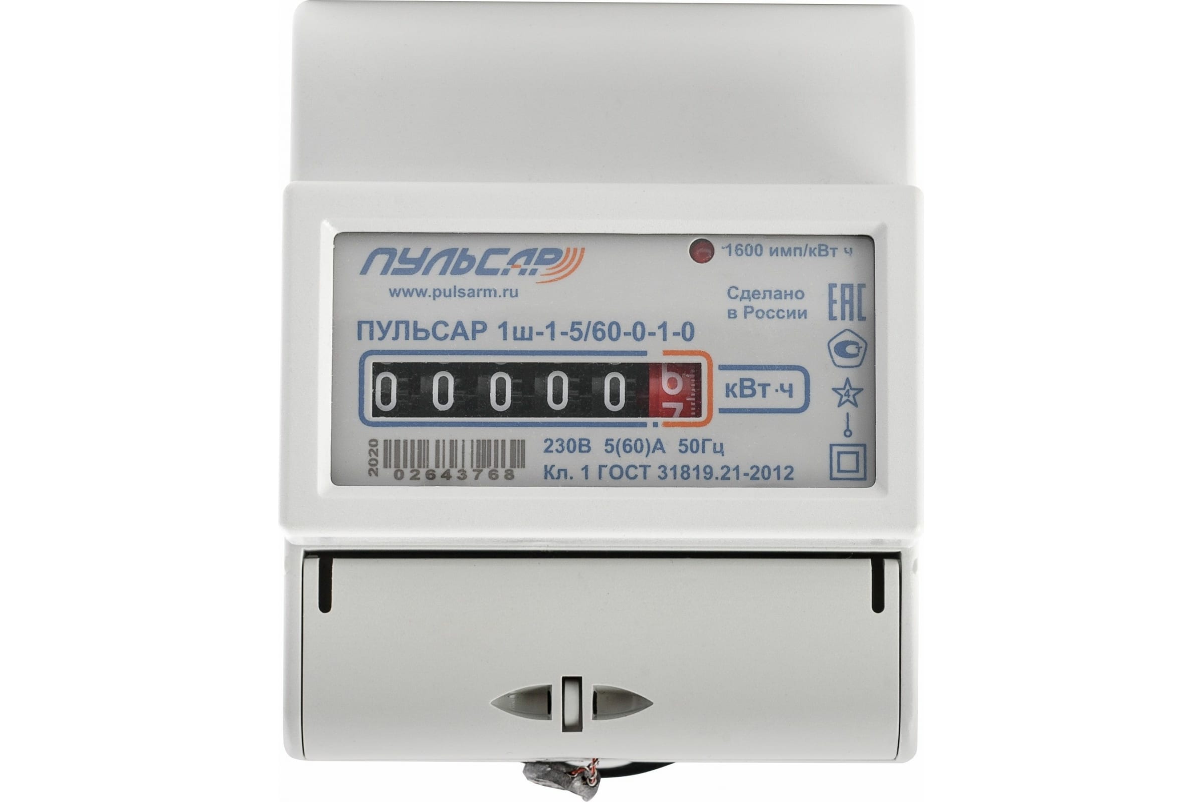 Однофазный однотарифный механический счетчик электроэнергии ПУЛЬСАР 1ш-1-5/60-0-1-0 МПИ 16лет Н00013899