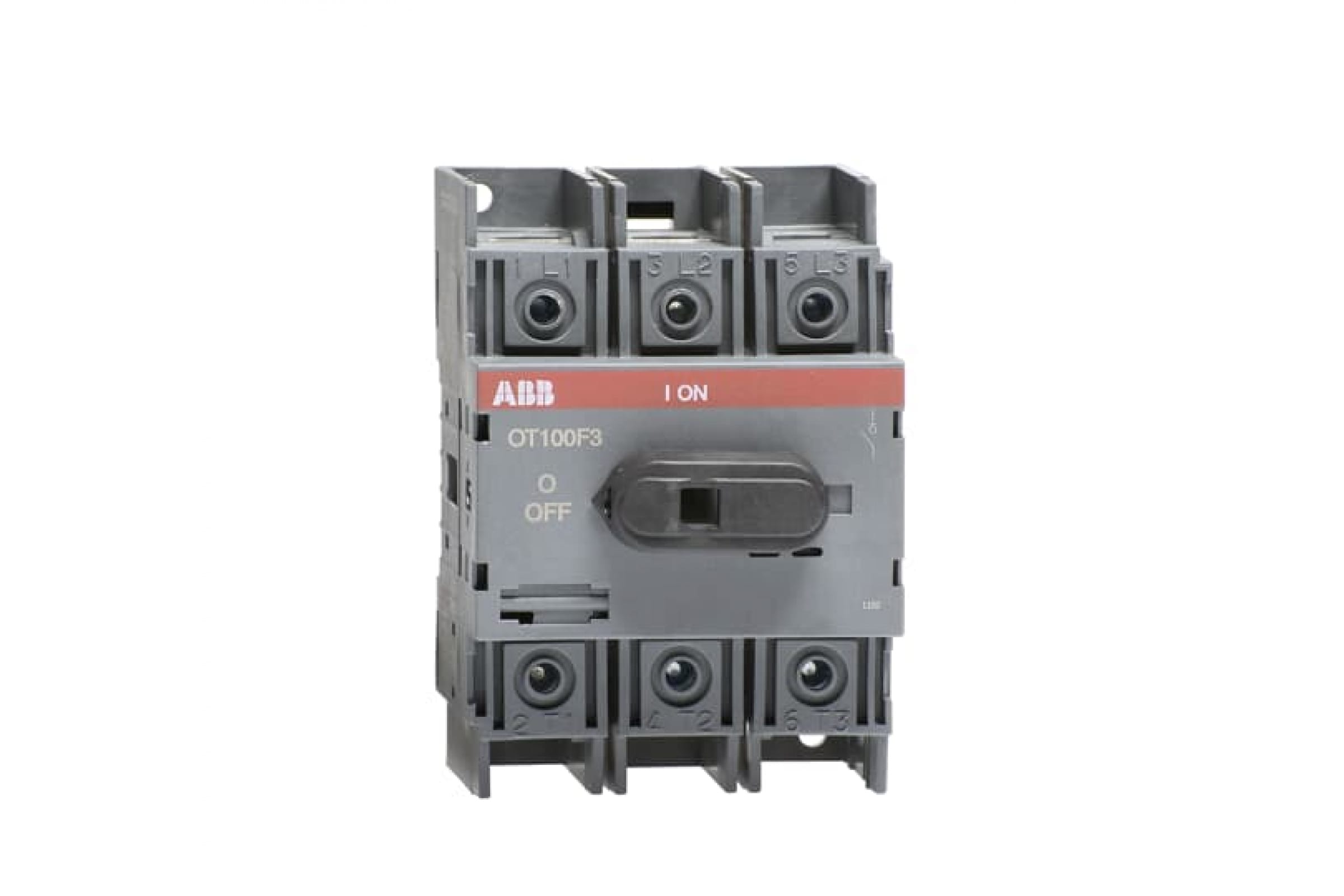 Рубильник ABB, OT100F3, 3п, с рукояткой, DIN/винт, серый 1SCA105004R1001