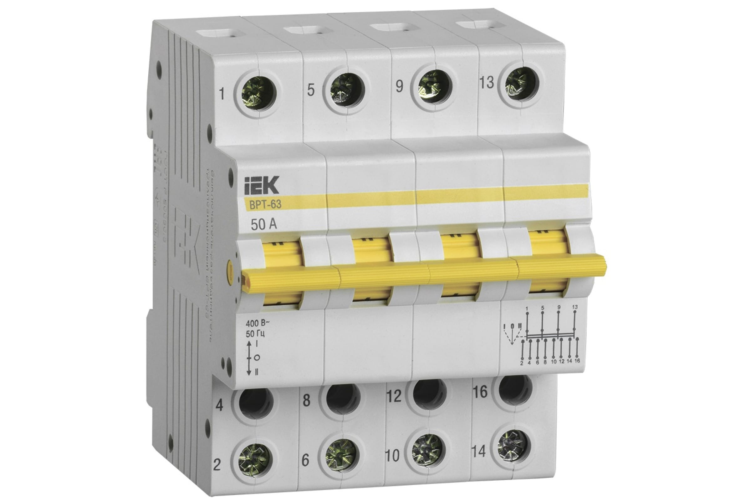 Трехпозиционный выключатель-разъединитель IEK ВРТ-63, 4P, 50А MPR10-4-050