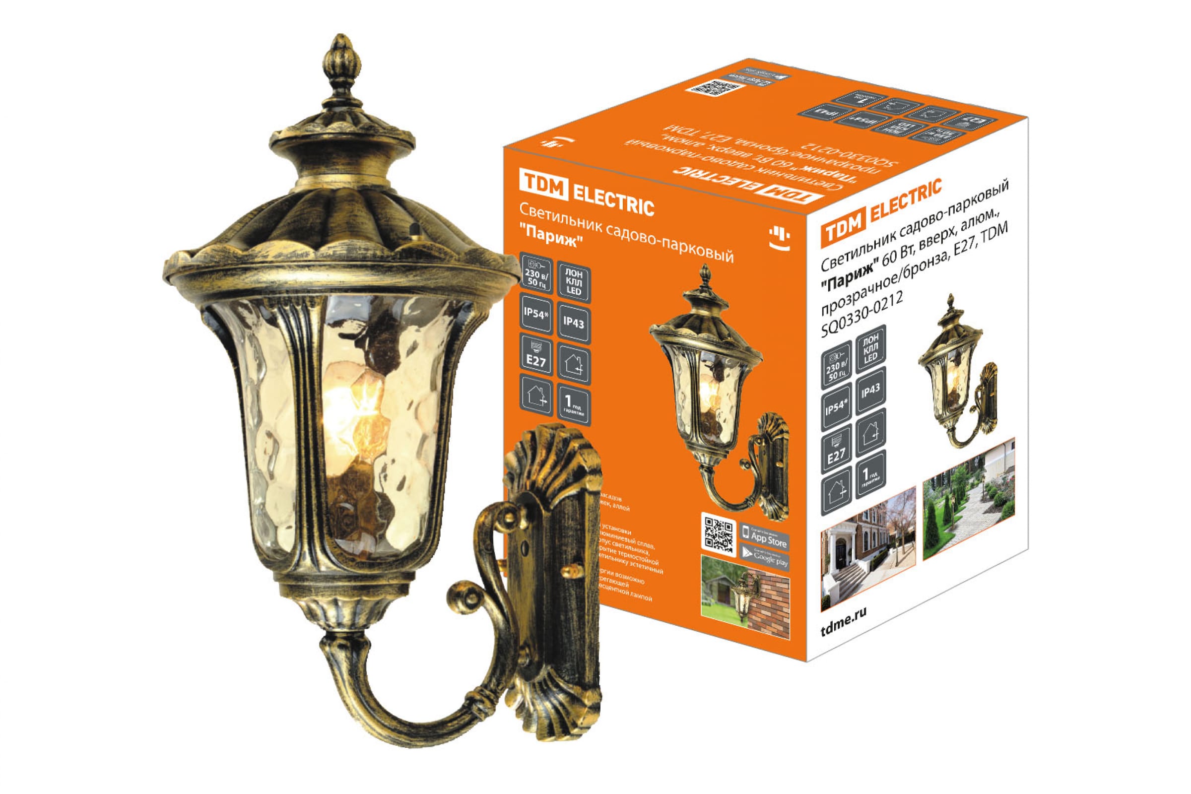 Садово-парковый светильник TDM "Париж" 60 Вт, вверх, алюминий, прозрачное/бронза, Е27, SQ0330-0212