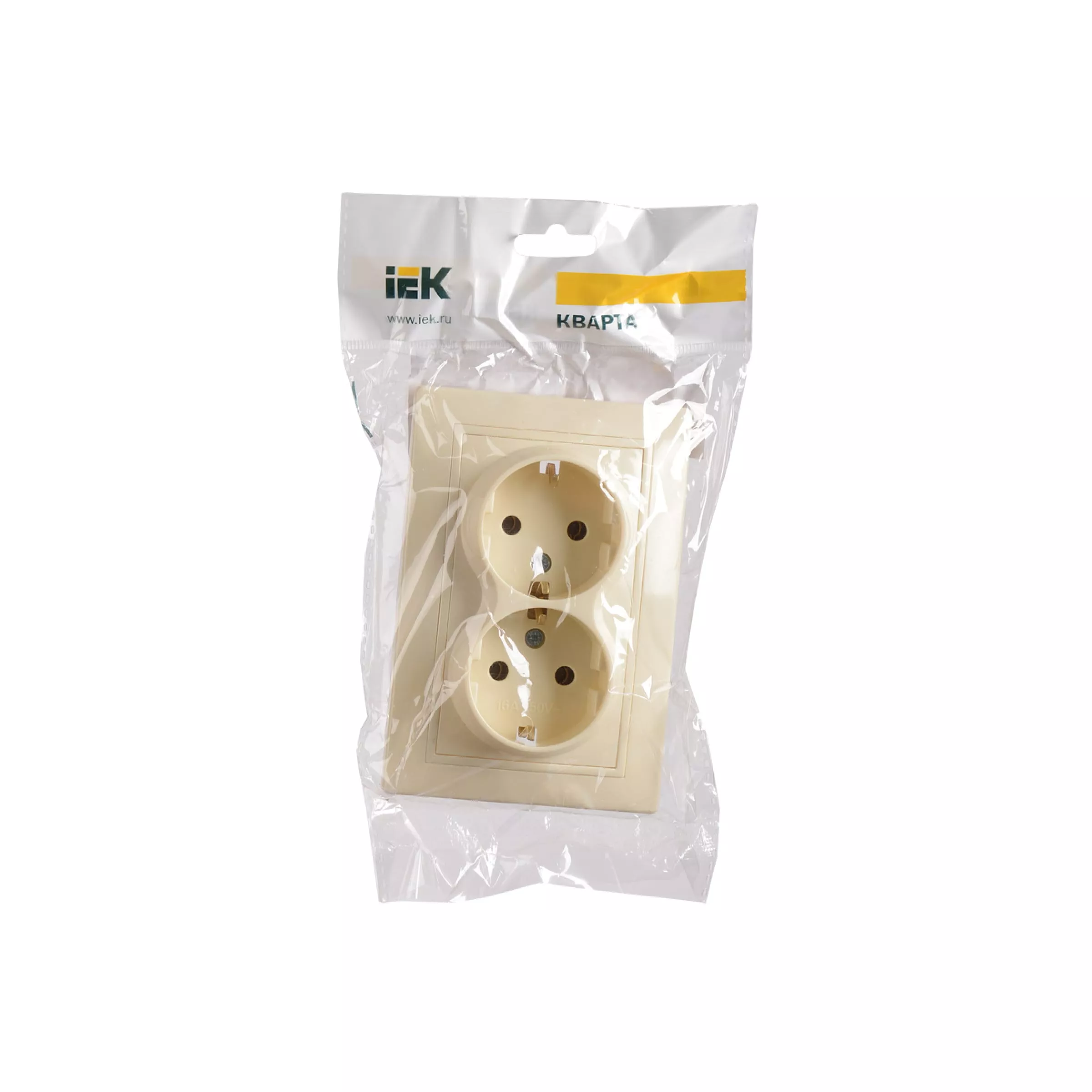 2местная розетка IEK КВАРТА с заземлением, в сборе, без шторок, кремовый ERK24-K33-16-DM