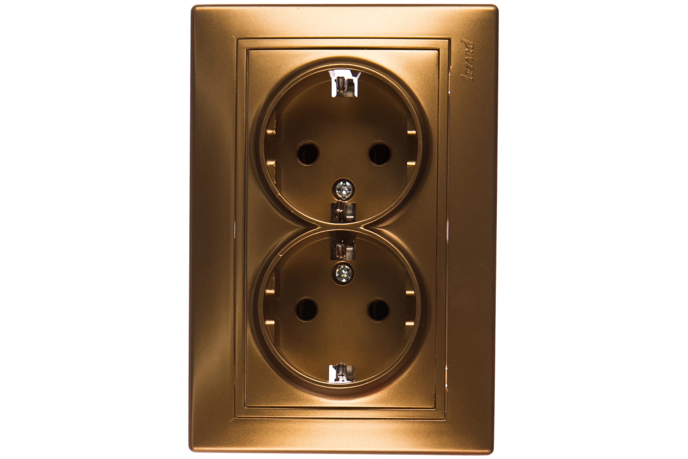 Двойная розетка Lezard MIRA, с заземлением, керамика, металлик золото, со вставкой 701-1313-127