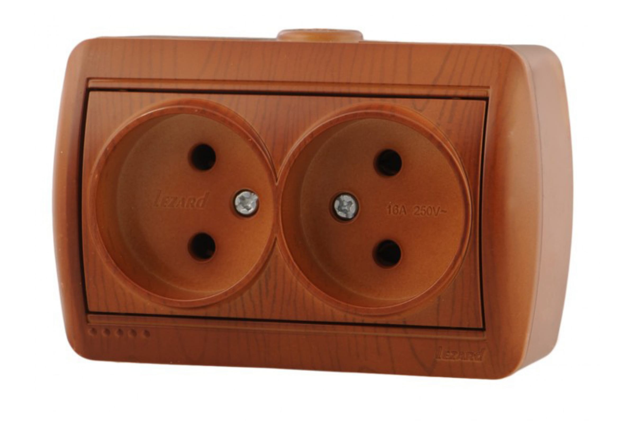 Двойная розетка Lezard NATA, без заземления, закрытый корпус, керамика, сосна, 710-0800-128