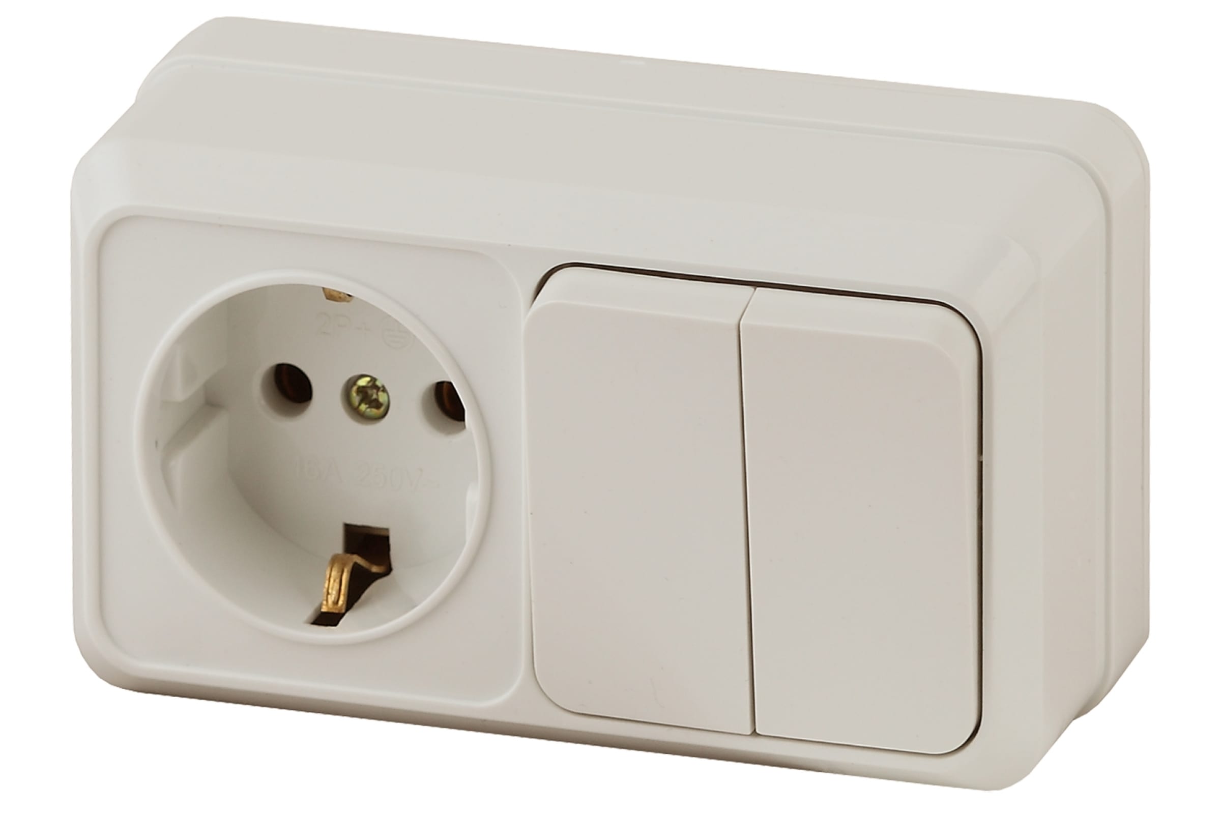 Двойной горизонтальный блок: розетка+выключатель Intro 270202 10-16А, 250В, IP20, ОУ, Quadro Б0036154