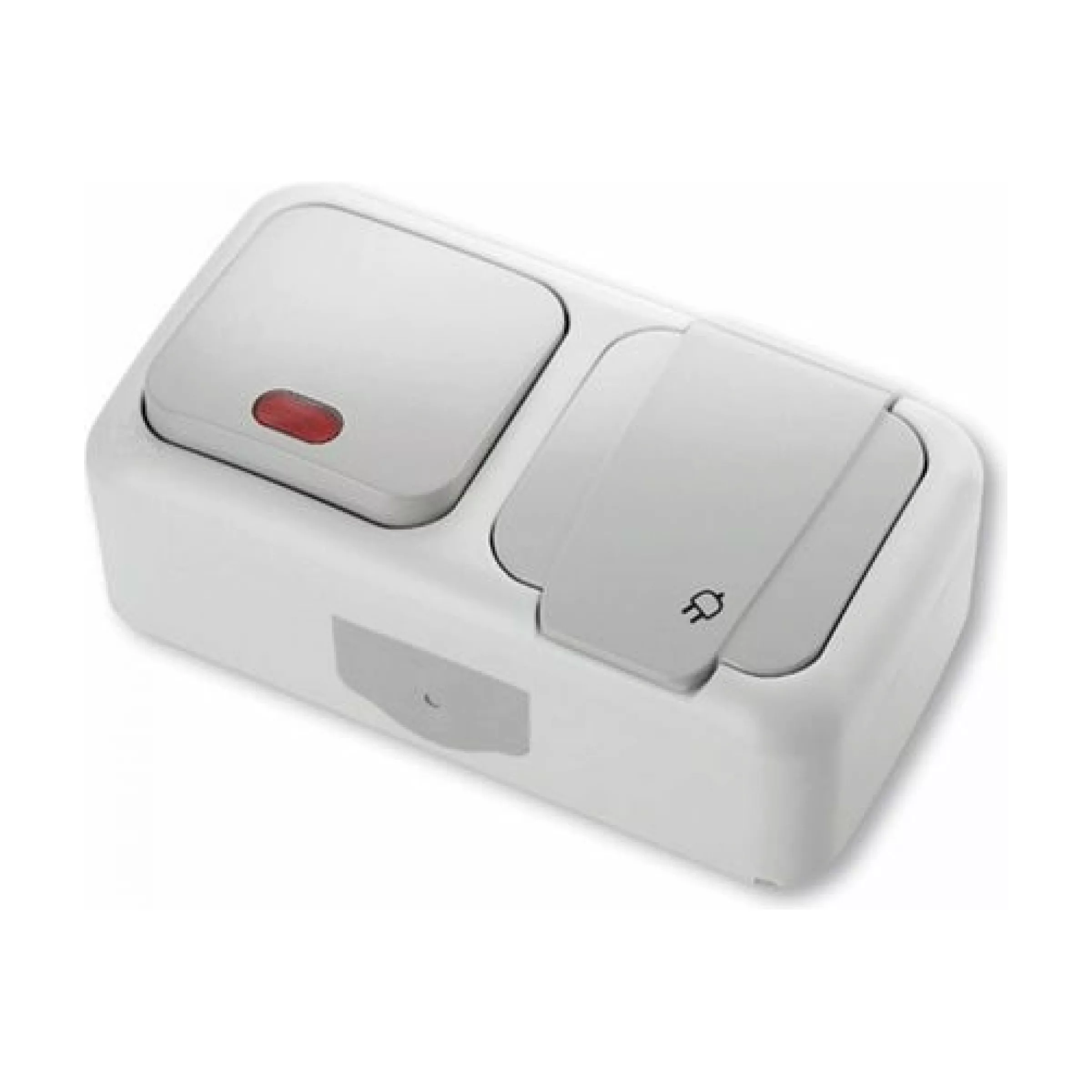 Горизонтальный блок: одноклавишный выключатель и розетка с крышкой VIKO белый 90555499