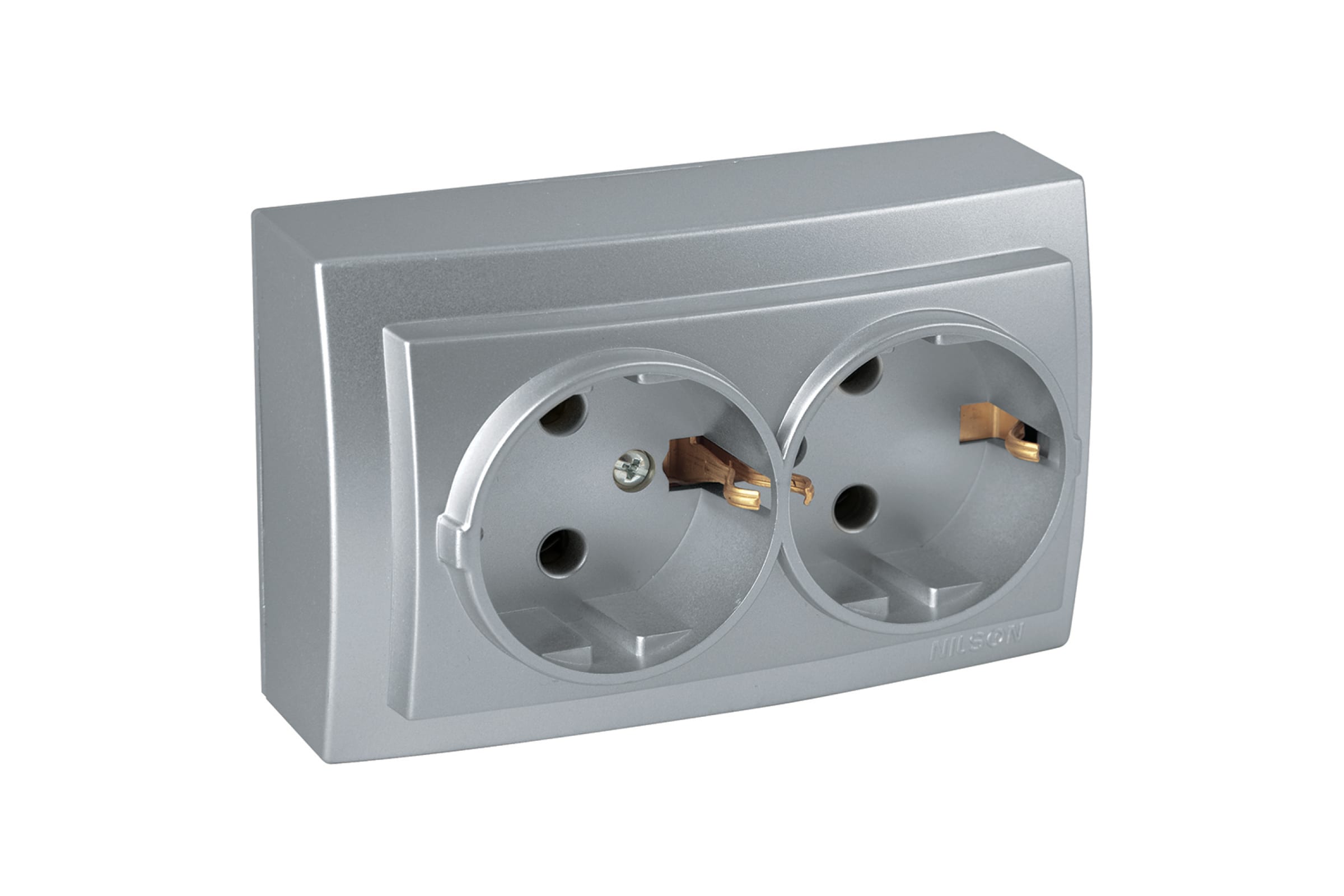 Розетка NILSON 2ОП з/к серебро Themis metallic 26131025
