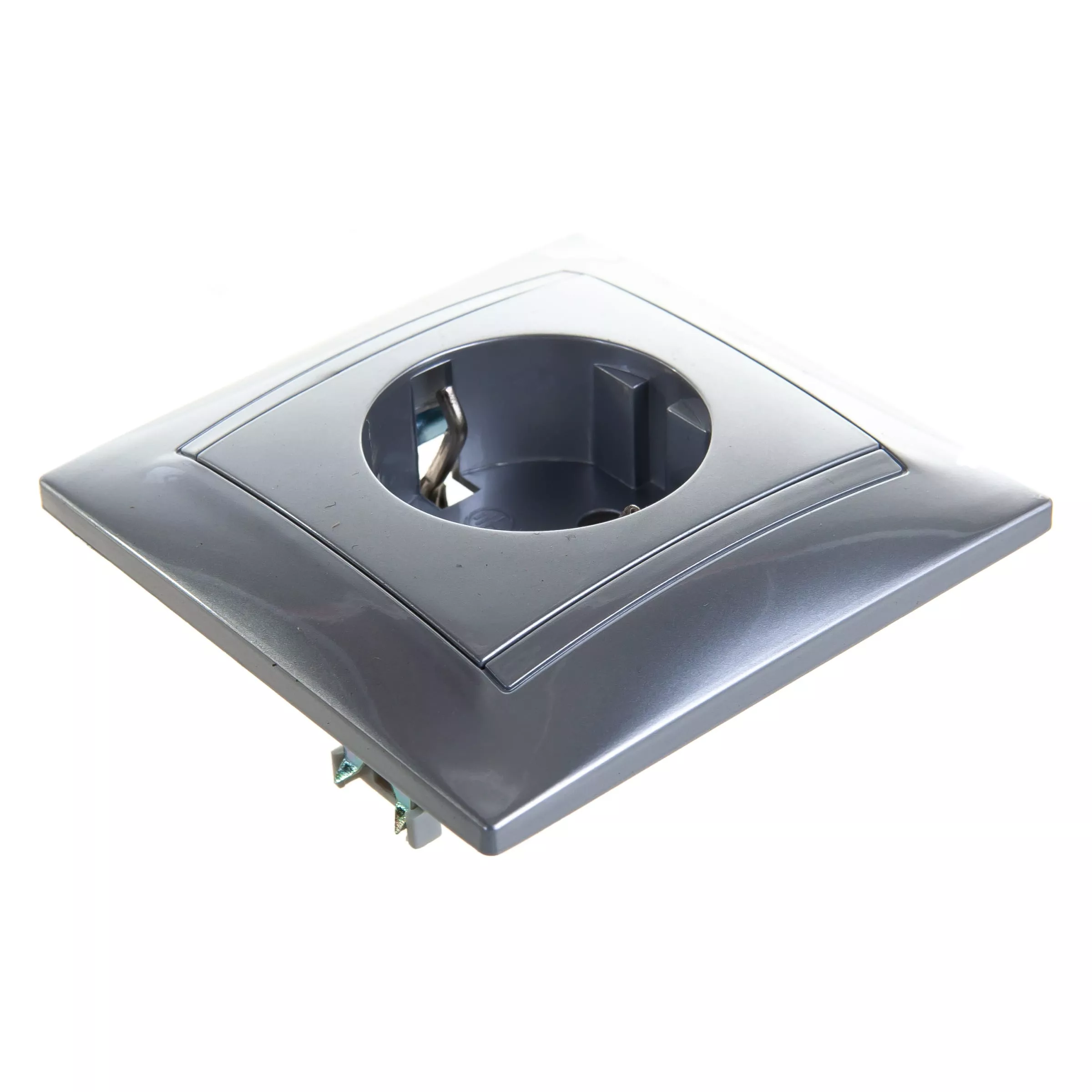 Розетка с защитной шторкой, серебристый металлик 2П+З 16А 250В TDM Лама SQ1815-0211