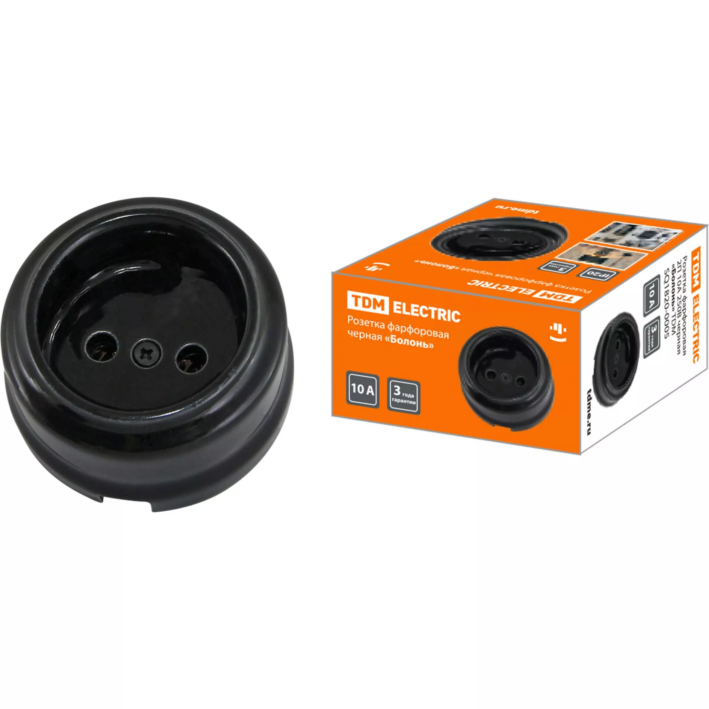 Розетка TDM фарфоровая 2П 10А 250В черная «Болонь» SQ1820-0005