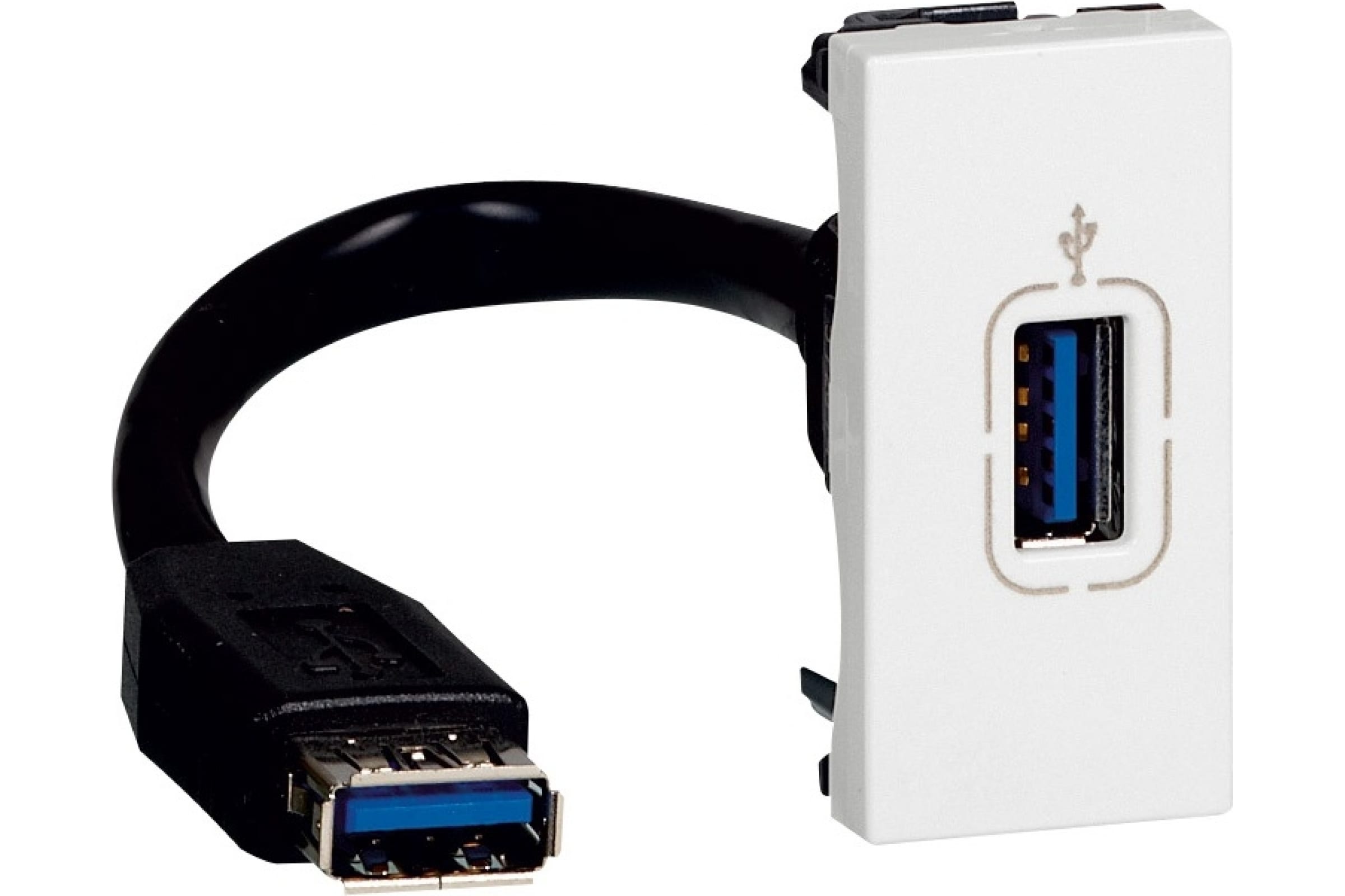 Розетка USB Legrand Mosaic 1 модуль, оборудована шнуром, белая 078746