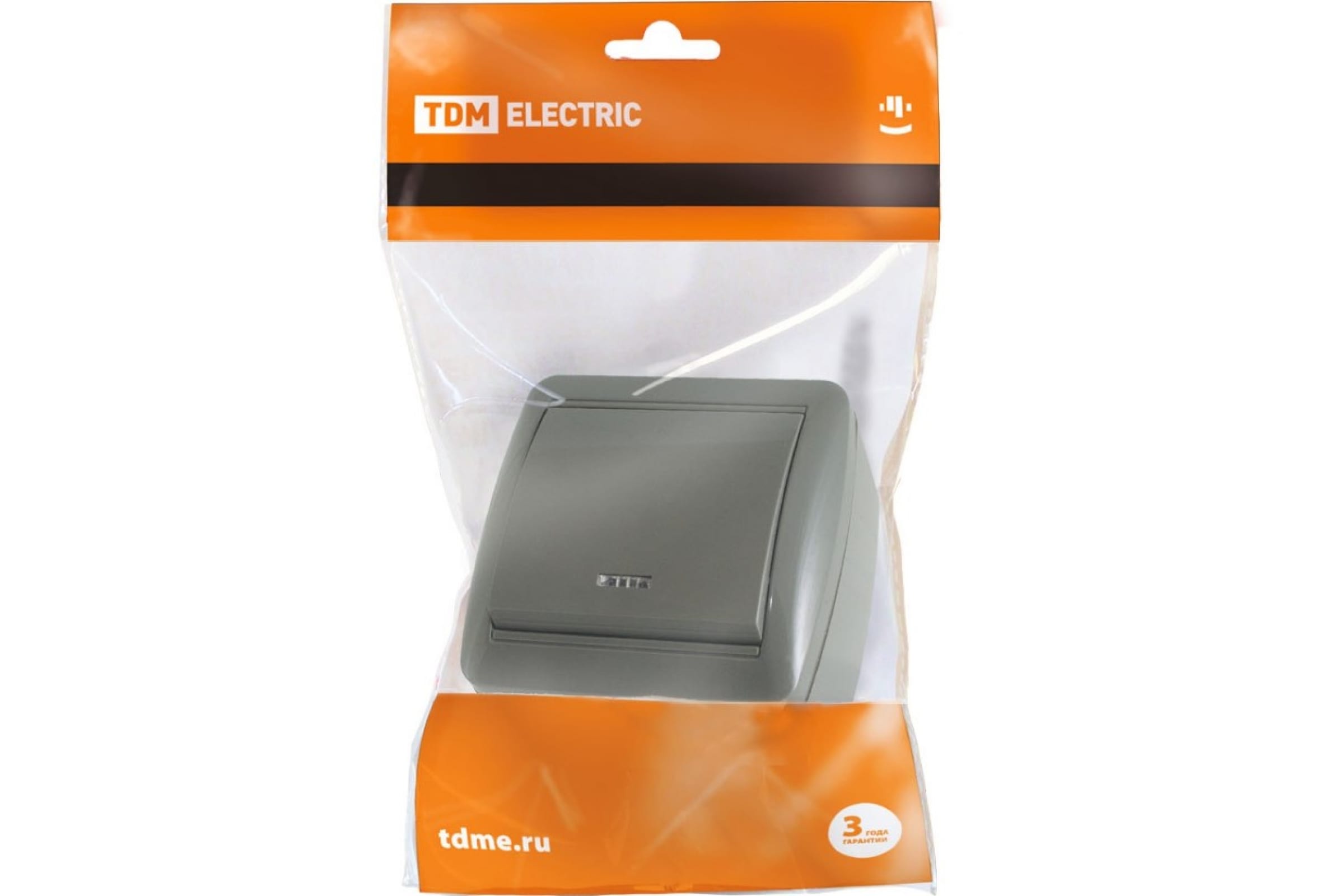 1-клавишный выключатель TDM открытой установки с подсветкой IP44 10А серый "Селигер" SQ1818-0103