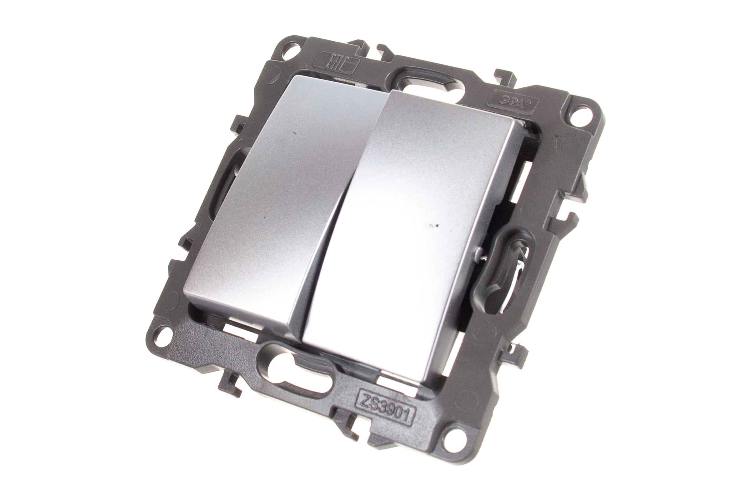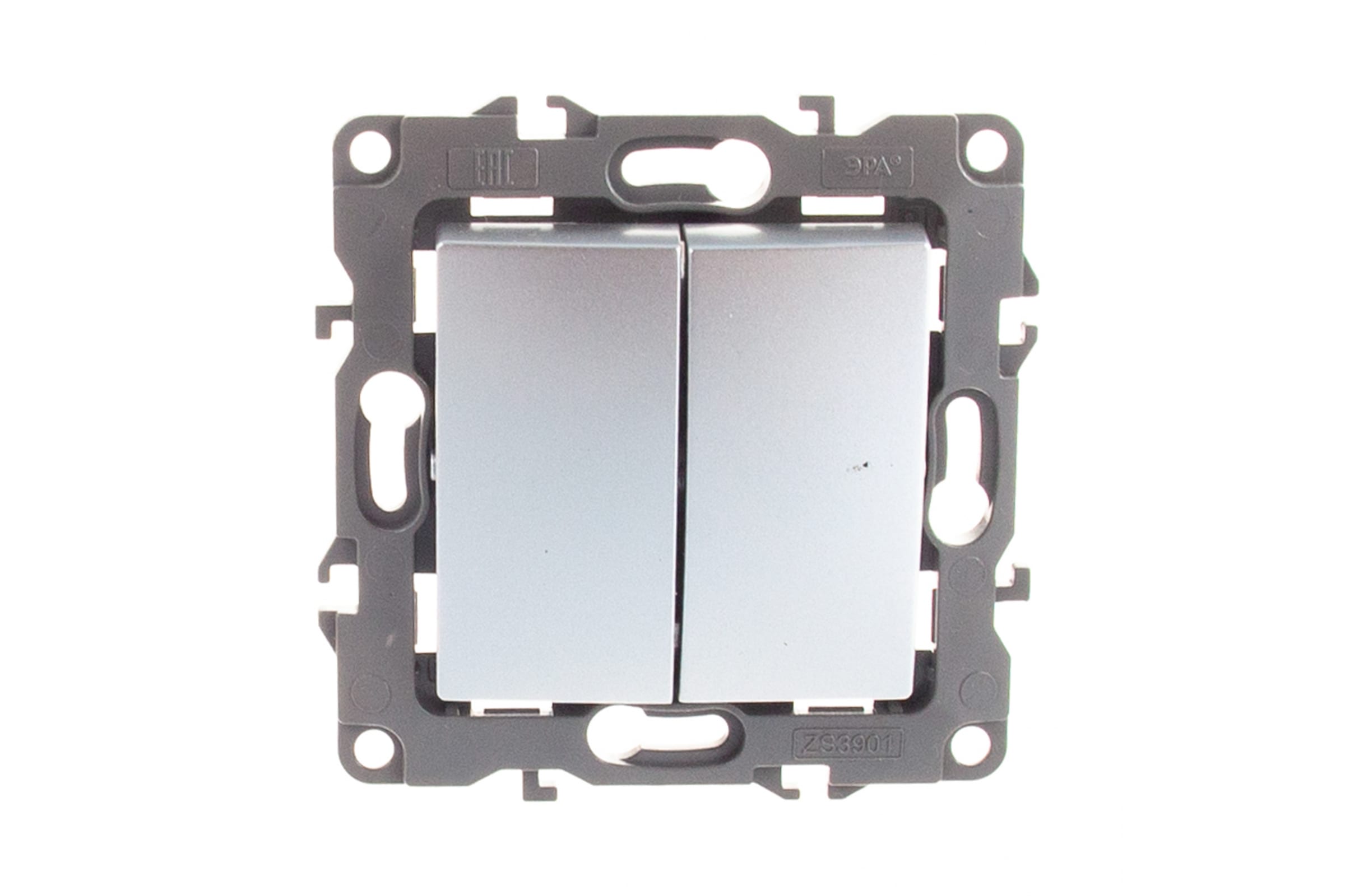 Двойной выключатель ЭРА 12-1104-03 10АХ-250В, IP20, алюминий Б0014647