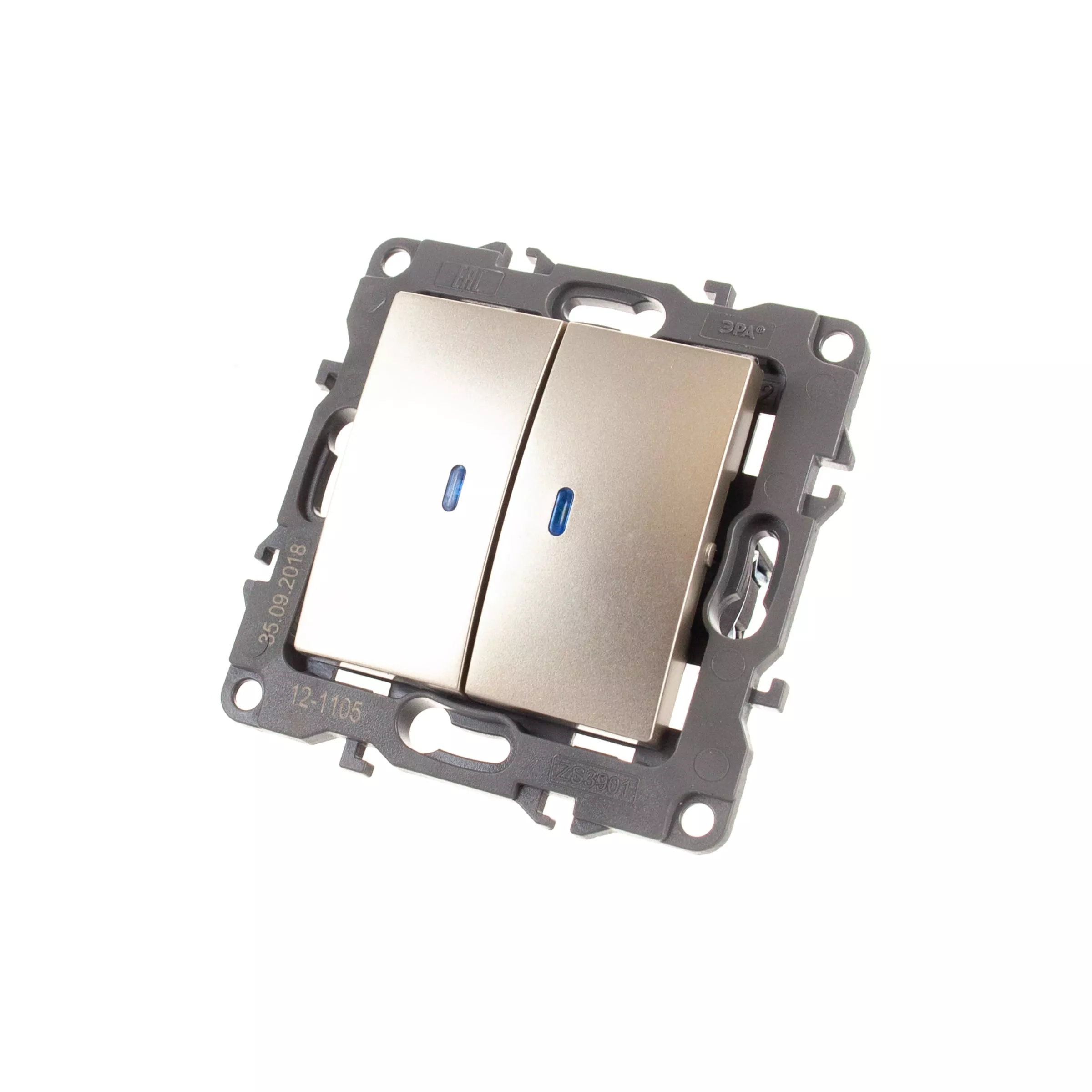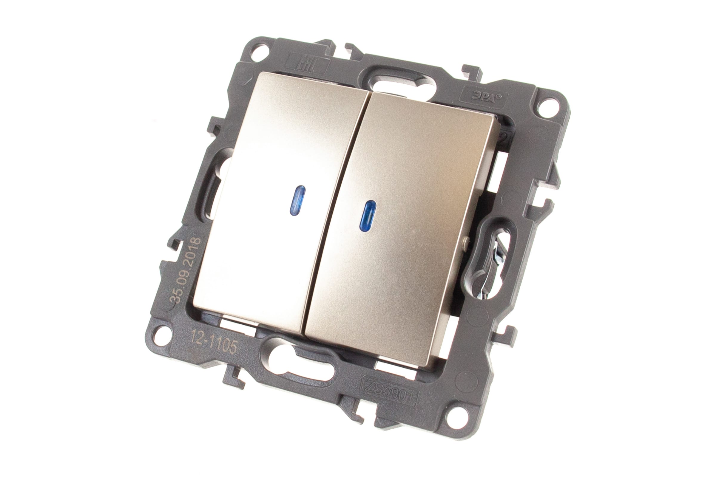 Двойной выключатель с подсветкой ЭРА 12-1105-04 10АХ-250В, IP20, шампань Б0014660