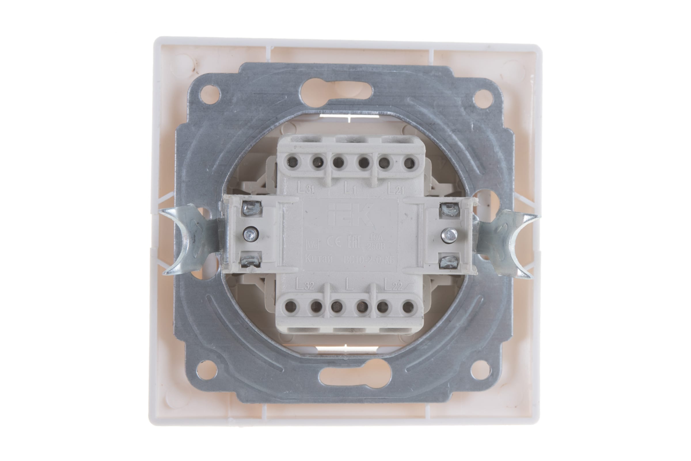 Двухклавишный выключатель IEK КВАРТА в сборе, скрытый монтаж, белый EVK20-K01-10-DM