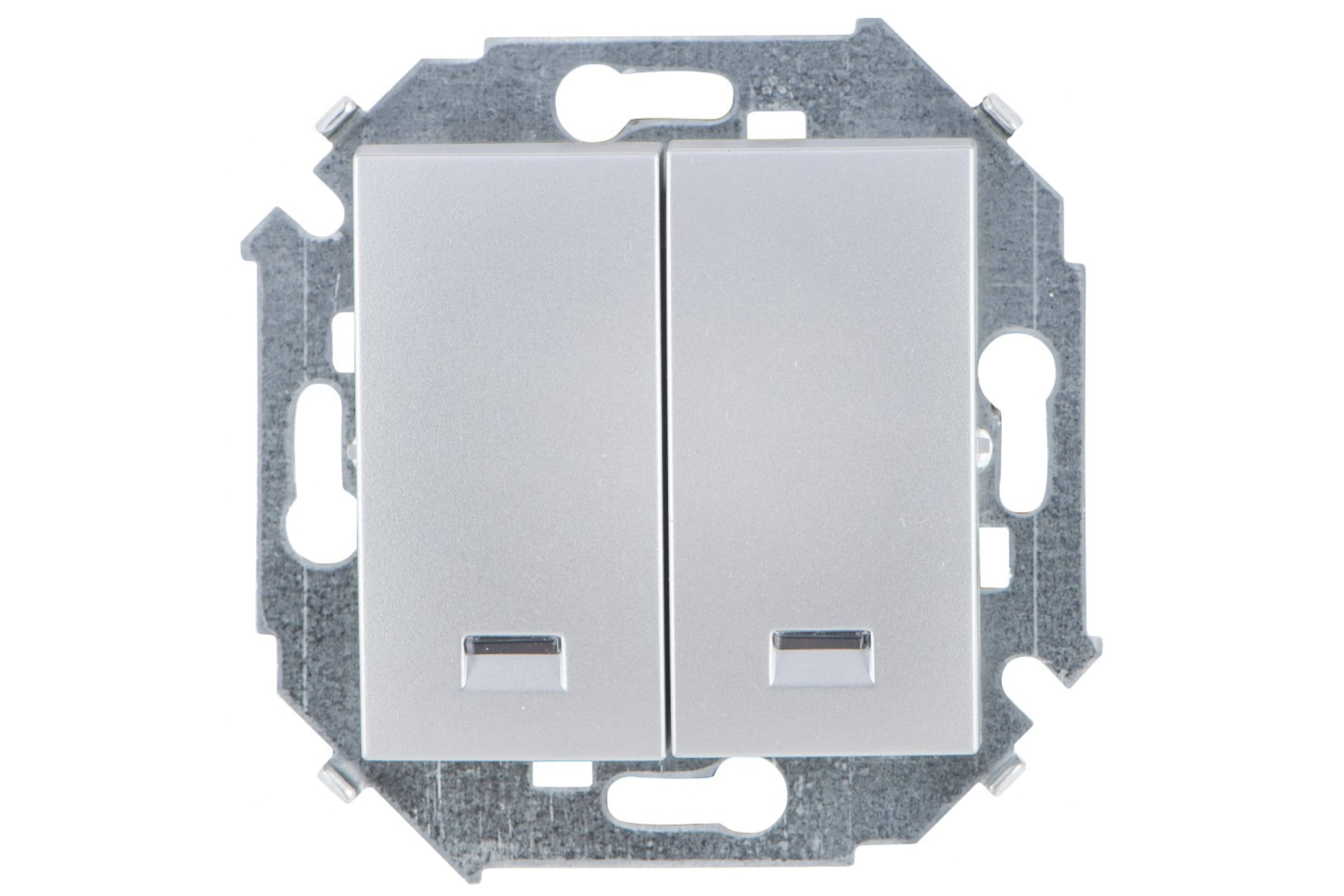 Двухклавишный выключатель Simon с подсветкой, 16А 250В, винтовой зажим, алюминий 1591392-033
