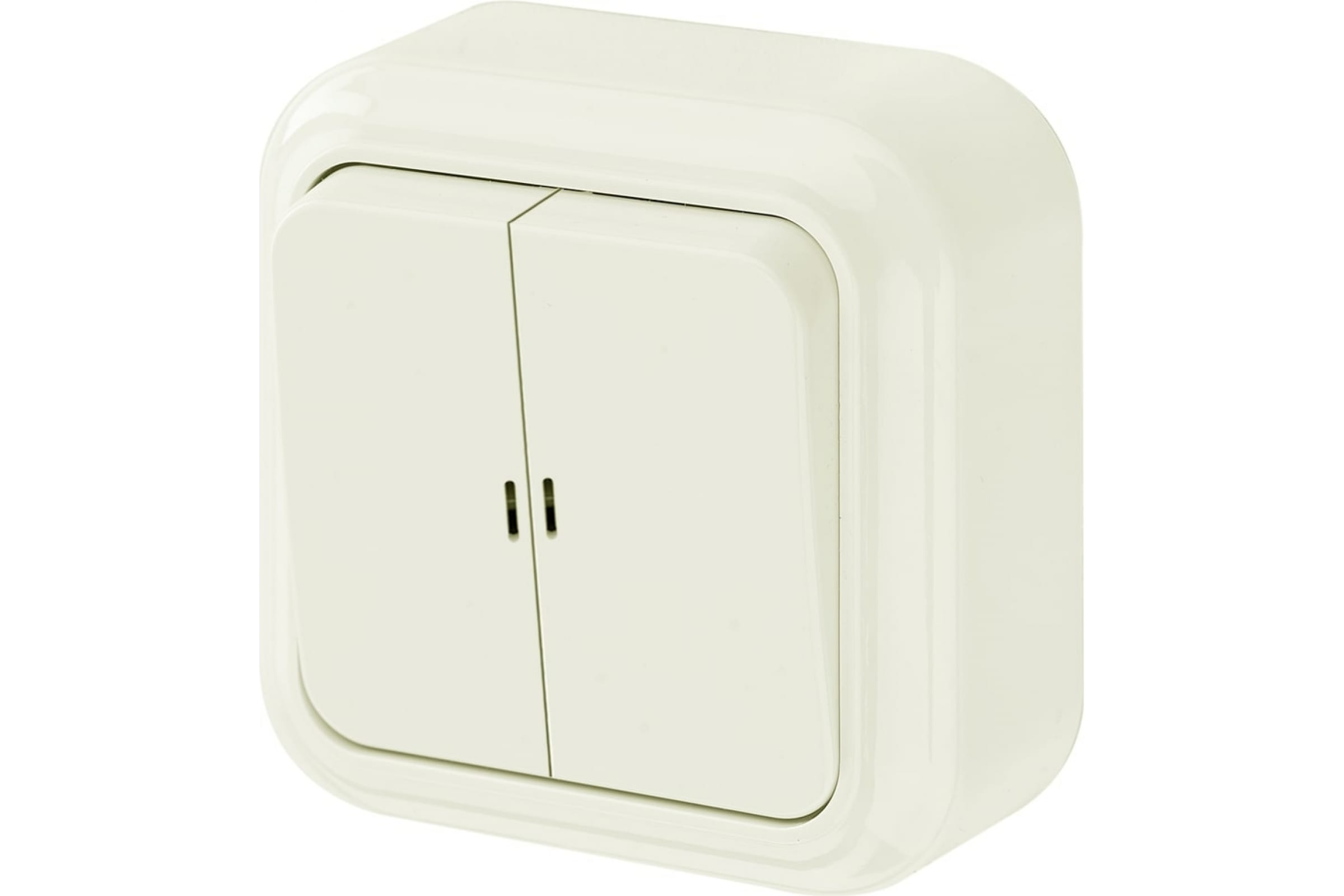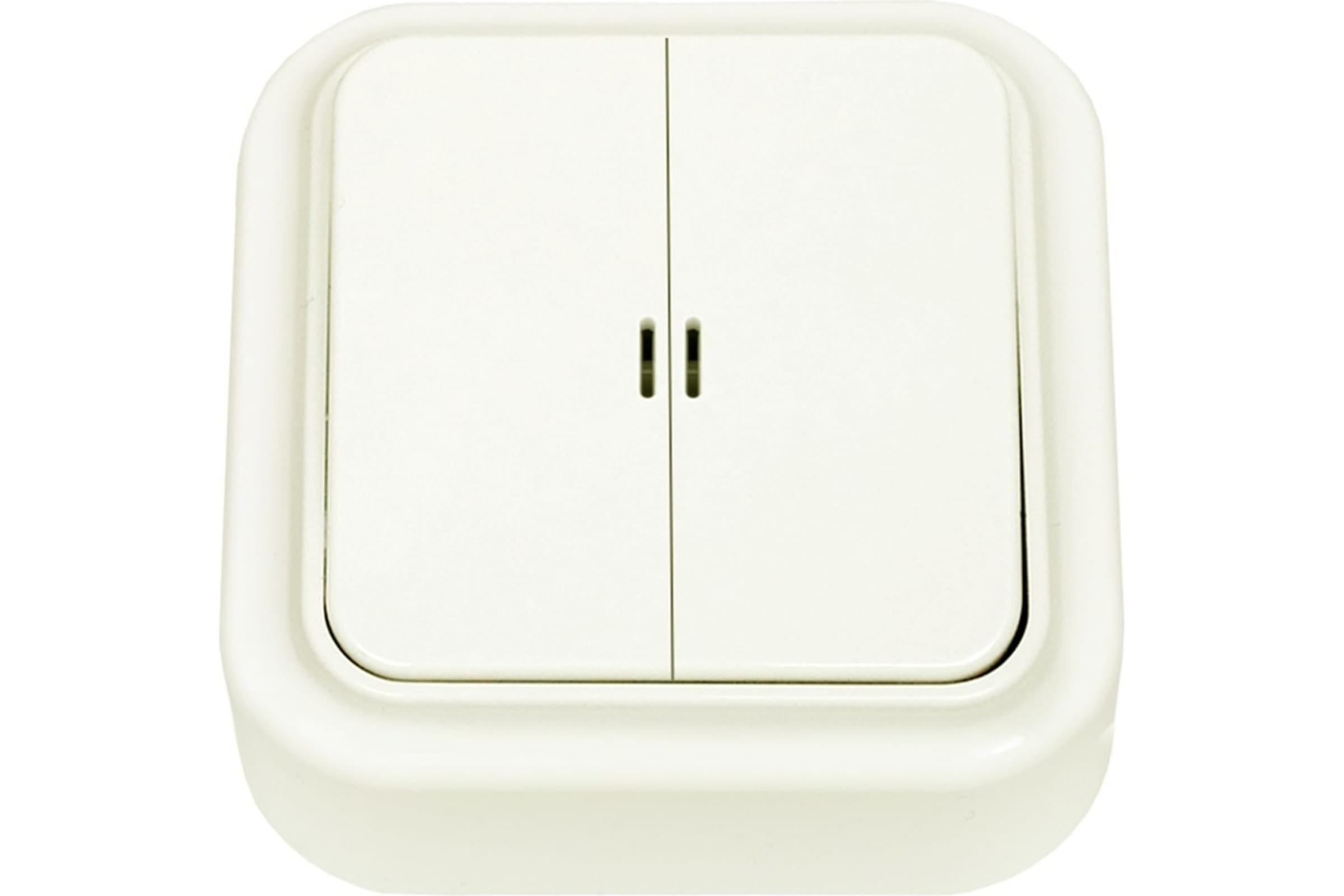 Выключатель Bylectrica 2-клавишная, открытая установка, 10А с подсветкой, серия ПРАЛЕСКА, бежевый А510-215