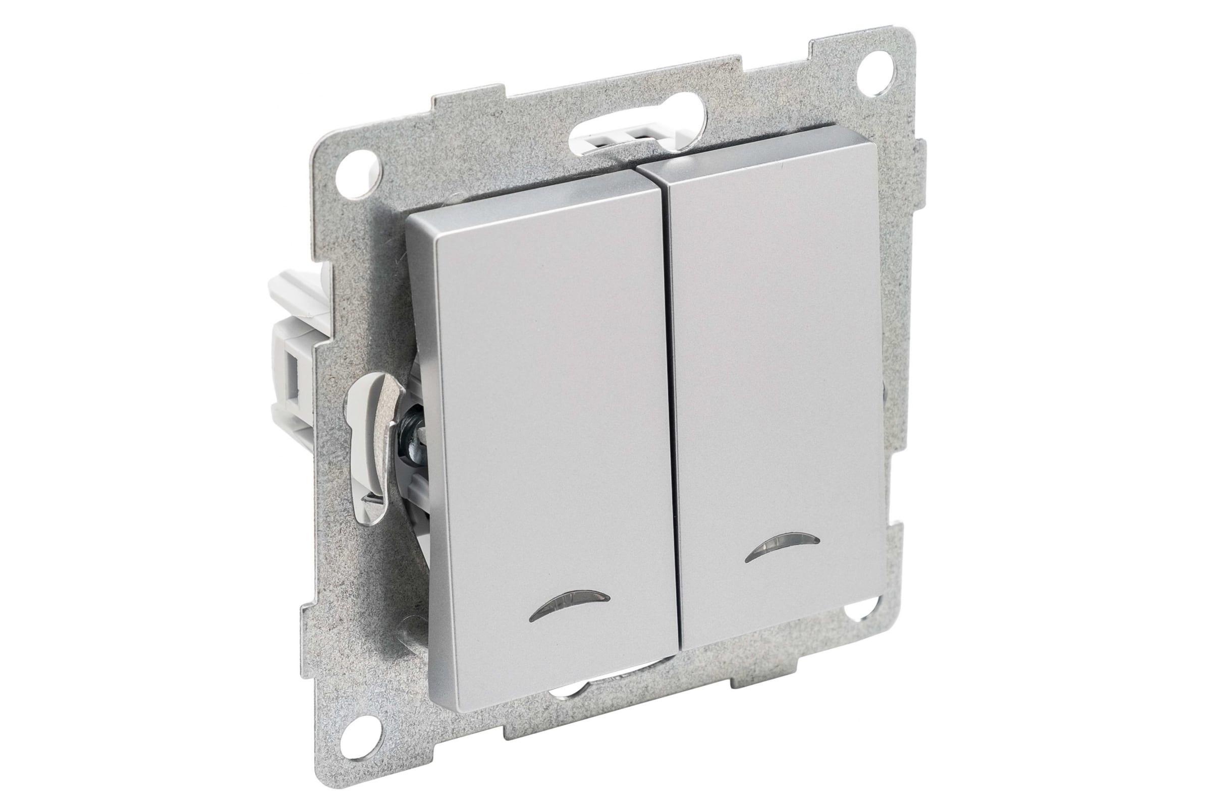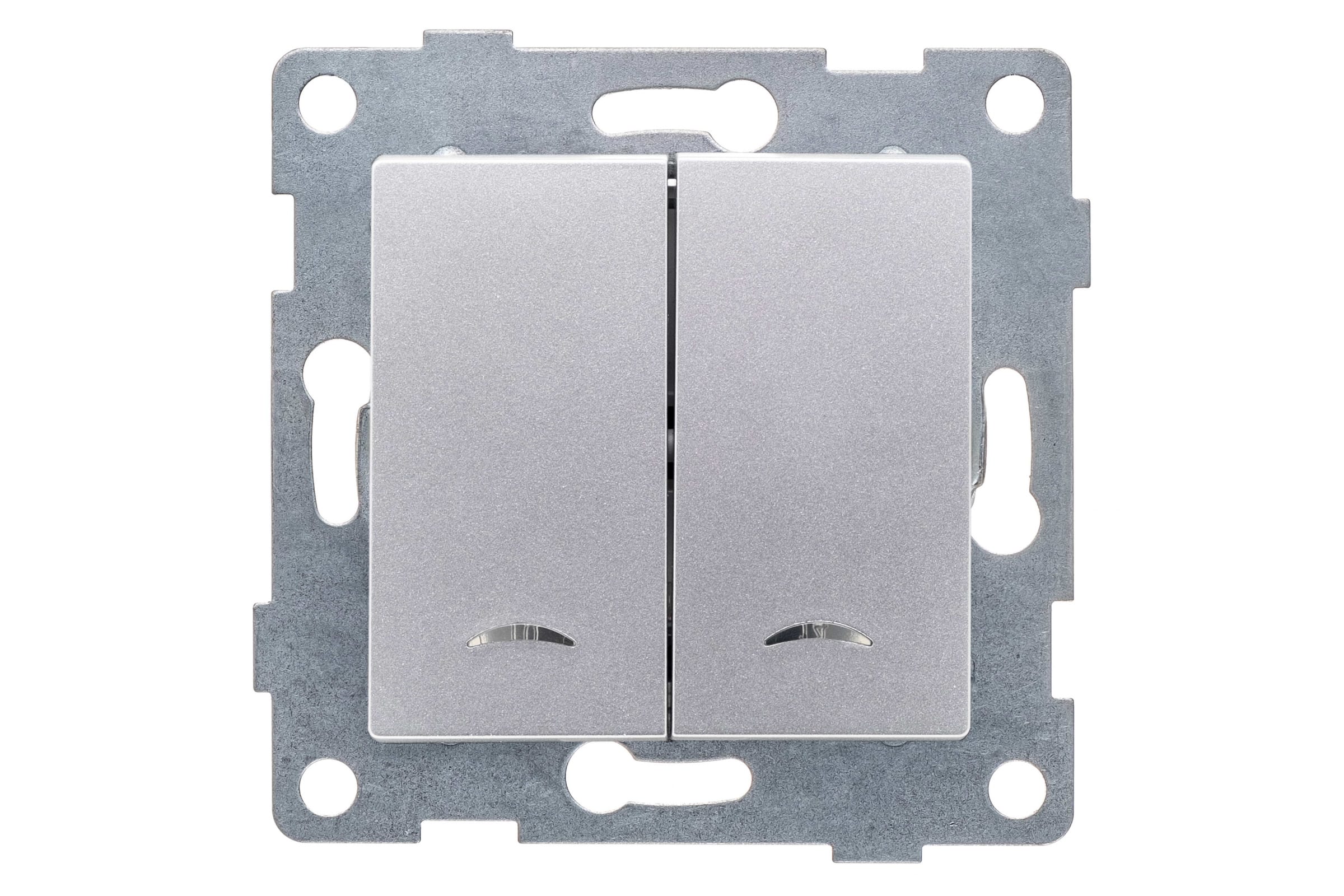 Выключатель GUSI ELECTRIC Ugra 2 клавиши, индикация, СУ, 10А, 250В, серебро С11В28-004
