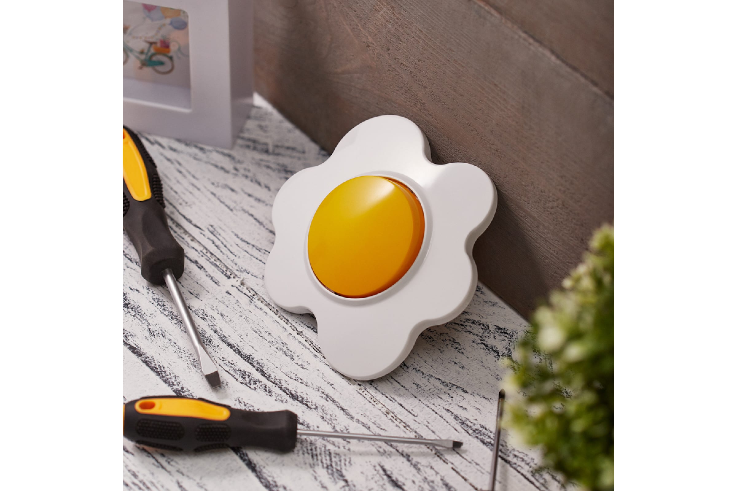 Выключатель KRANZ Яичница одноклавишный скрытой установки, желтый/белый KR-78-0629