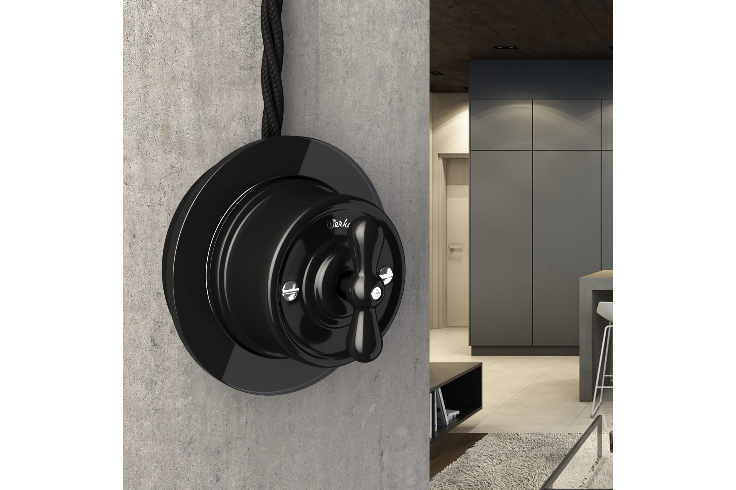 Выключатель на 4 положения WERKEL W5620008 двухклавишный черный Ретро a051452