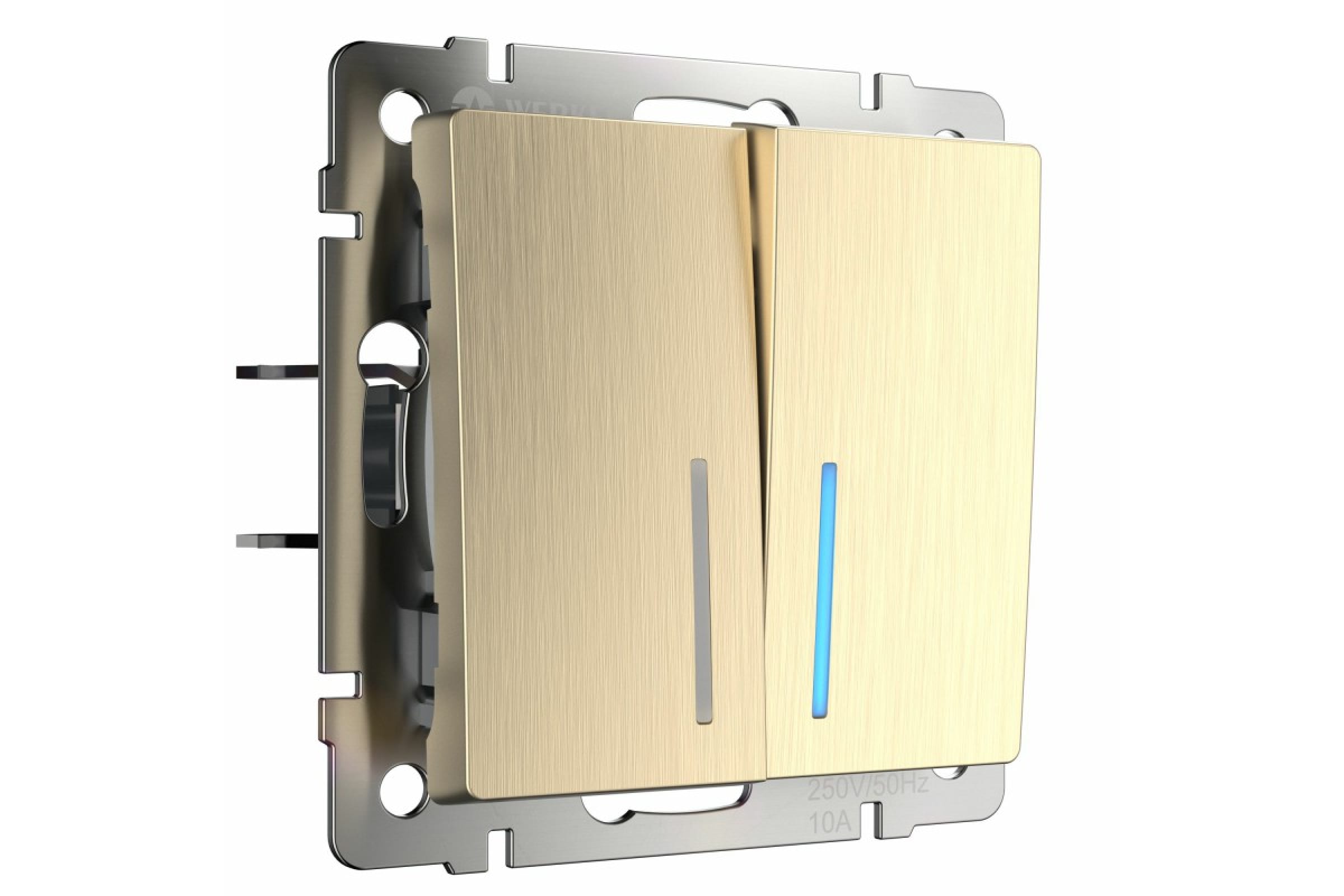 Выключатель WERKEL W1120110 двухклавишный с подсветкой шампань рифленый a051414