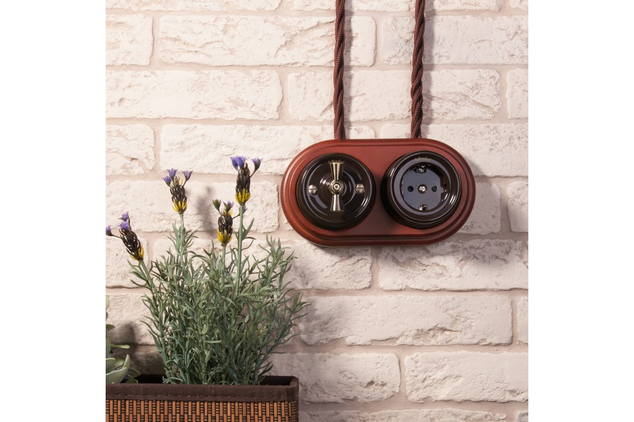 Выключатель WERKEL W5620014 на 4 положения, двухклавишный (коричневый) Ретро a051052
