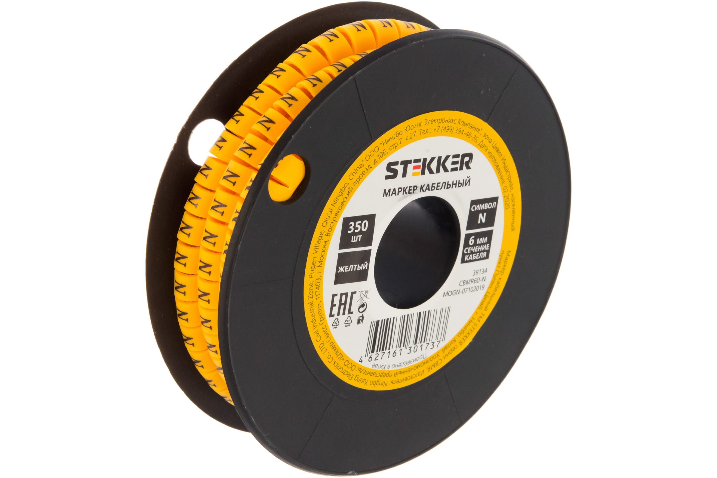 Кабель-маркер STEKKER N для провода сеч.6мм, желтый, CBMR60-N 39134