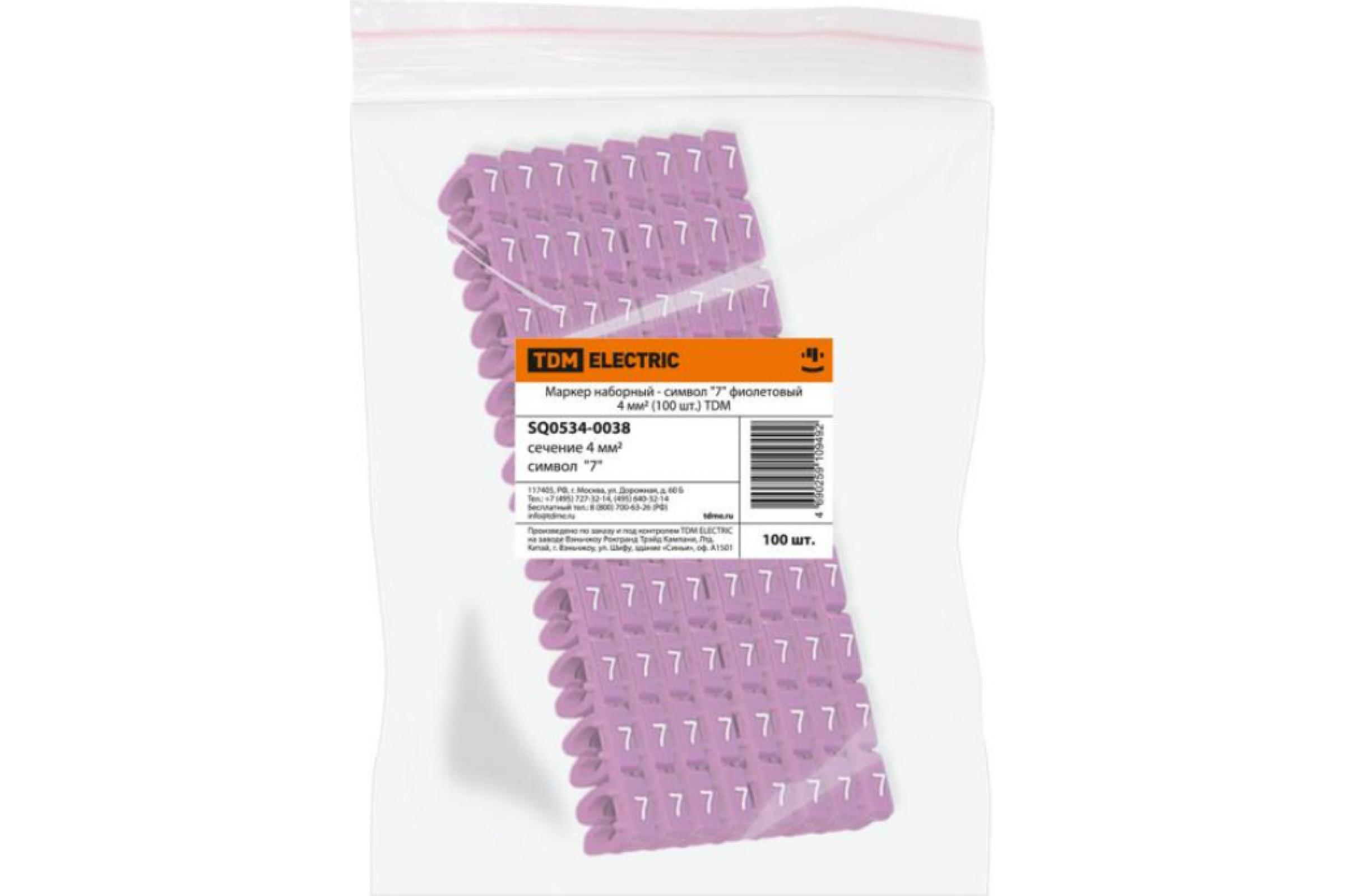 Наборный маркер TDM символ 7, фиолетовый, 4 мм2, 100 штук SQ0534-0038