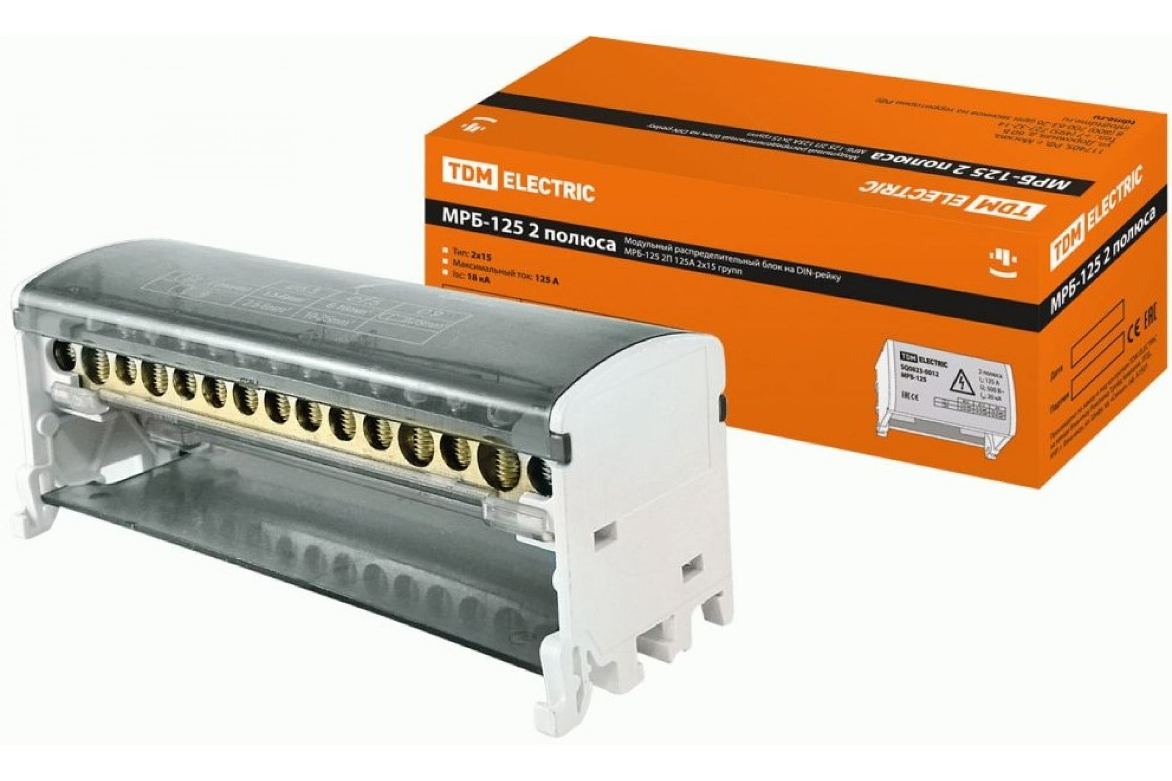 Модульный распределительный блок TDM на DIN-рейку МРБ-125 2П 125А 2х15 групп SQ0823-0012