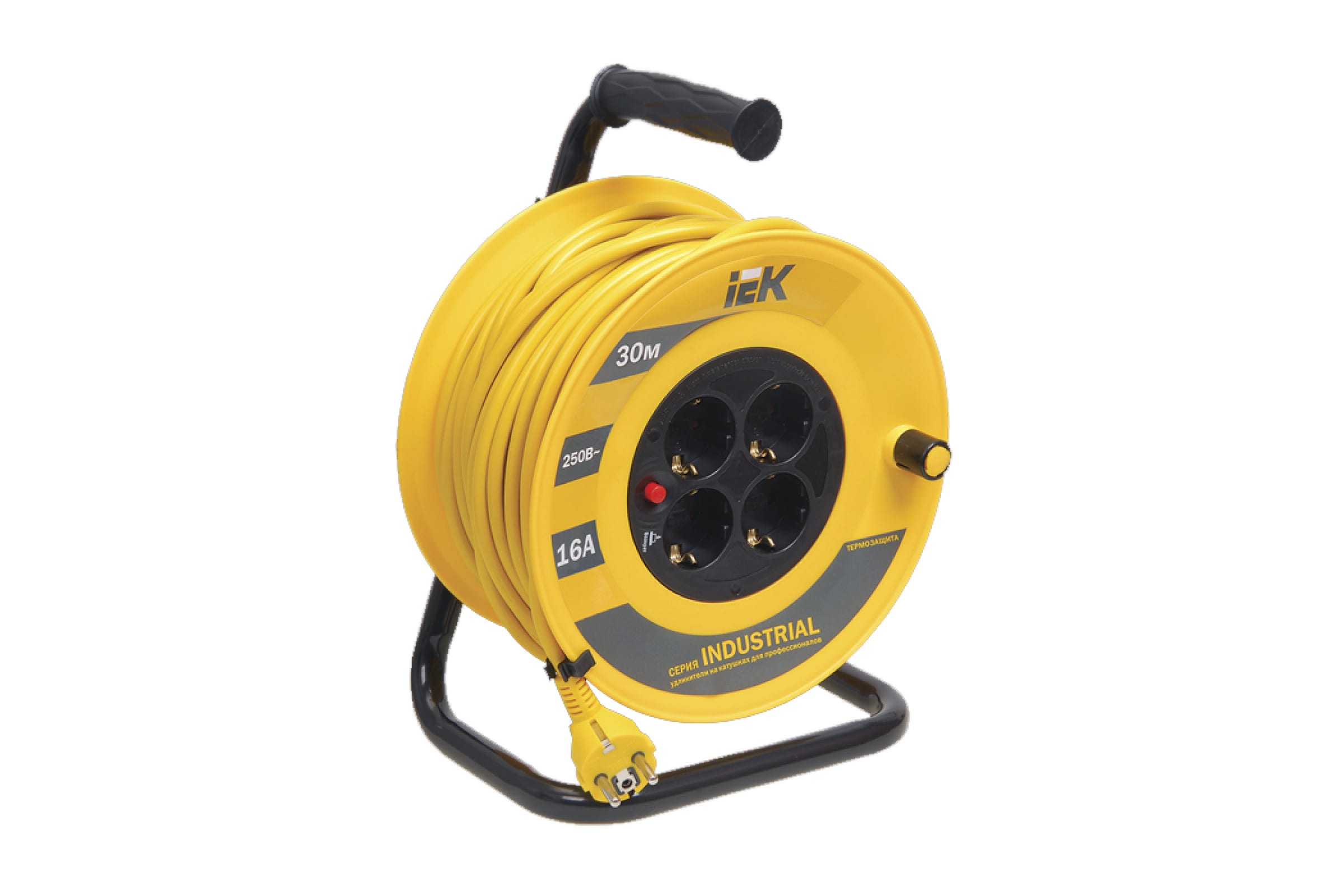 Катушка с термозащитой IEK "Industrial" УК30 4 места, 2Р+PЕ, 30м, 3х1,5 мм2 WKP15-16-04-30