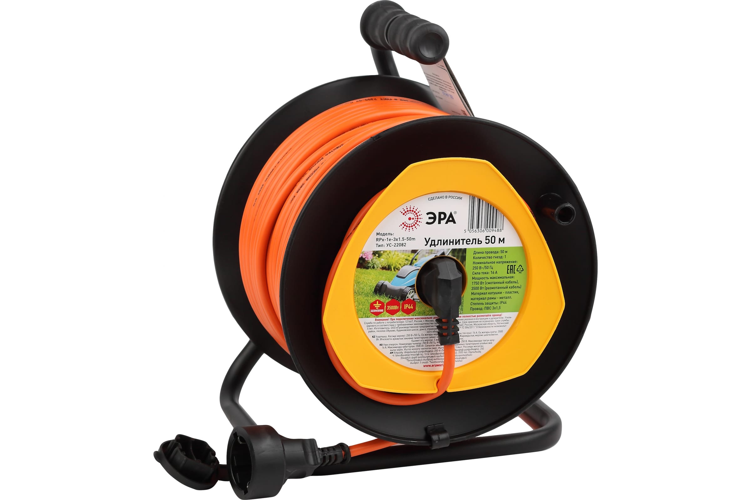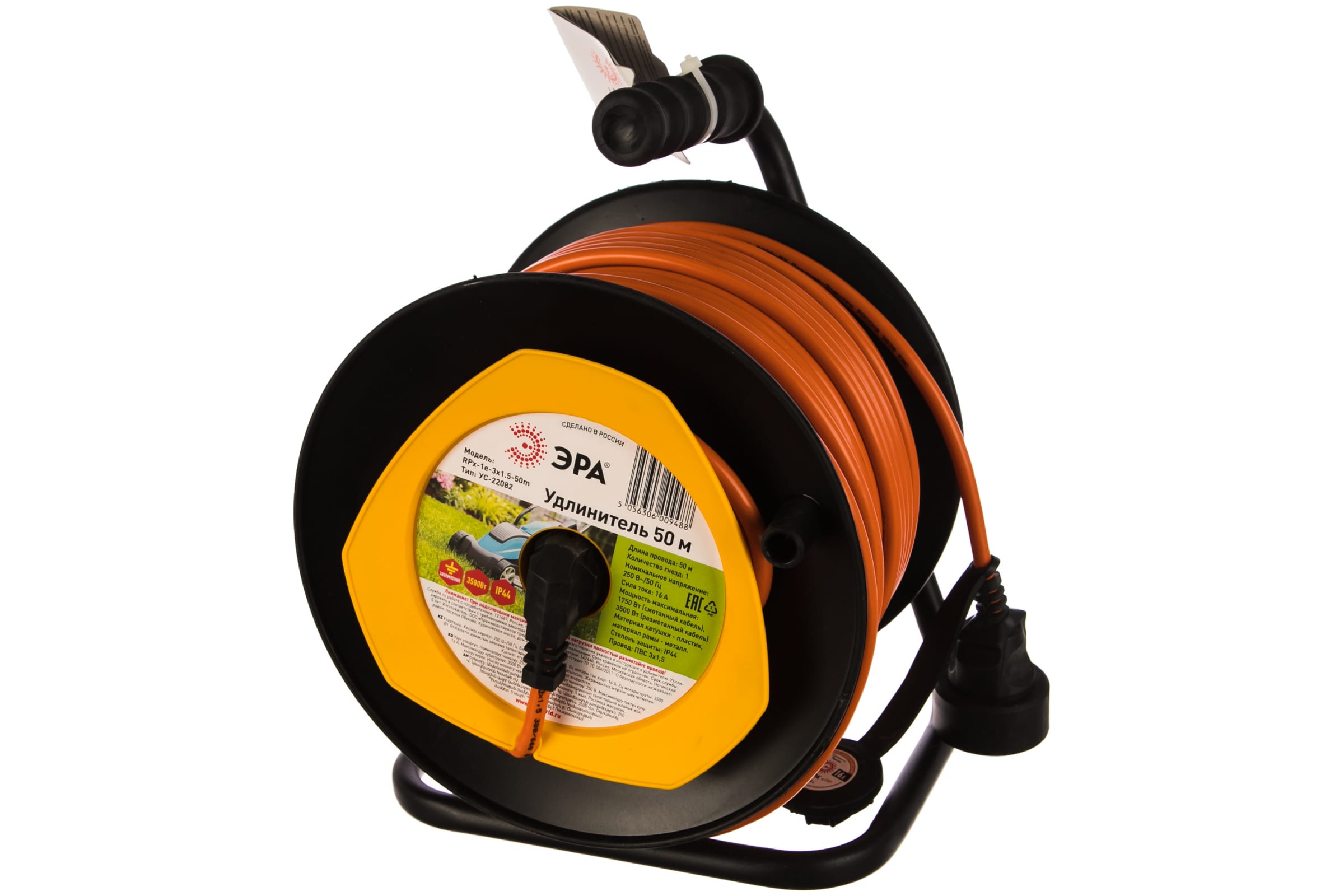 Силовой удлинитель ЭРА RPx1e3x1.550m на пластиковой катушке, c заземлением, 50м, 1 гнездо, ПВС 3х1.5 Б0046840