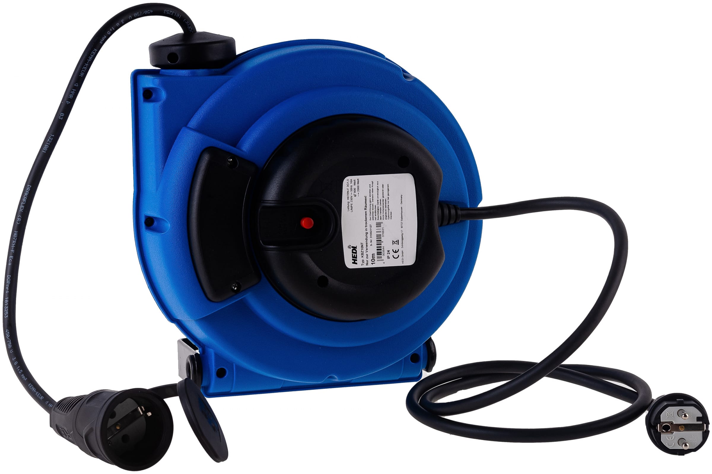 Удлинитель самосматывающийся HEDI H07RN-F 10 метров с креплением на стену IP24, 3х1,5 синий KBZ10NT