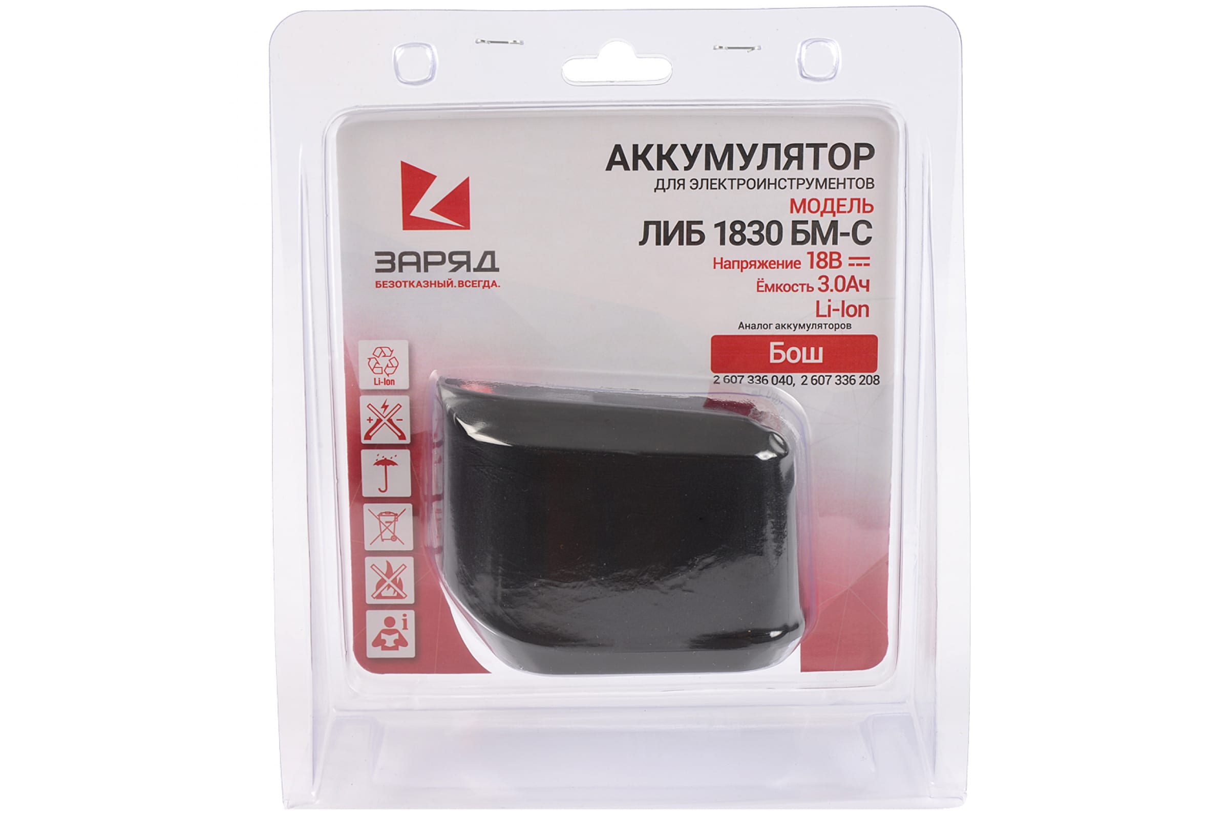 Аккумулятор для шуруповертов Бош (18.0В; 3.0Ач; Li-Ion) в блистере ЛИБ 1830 БМ-C Заряд 6117113